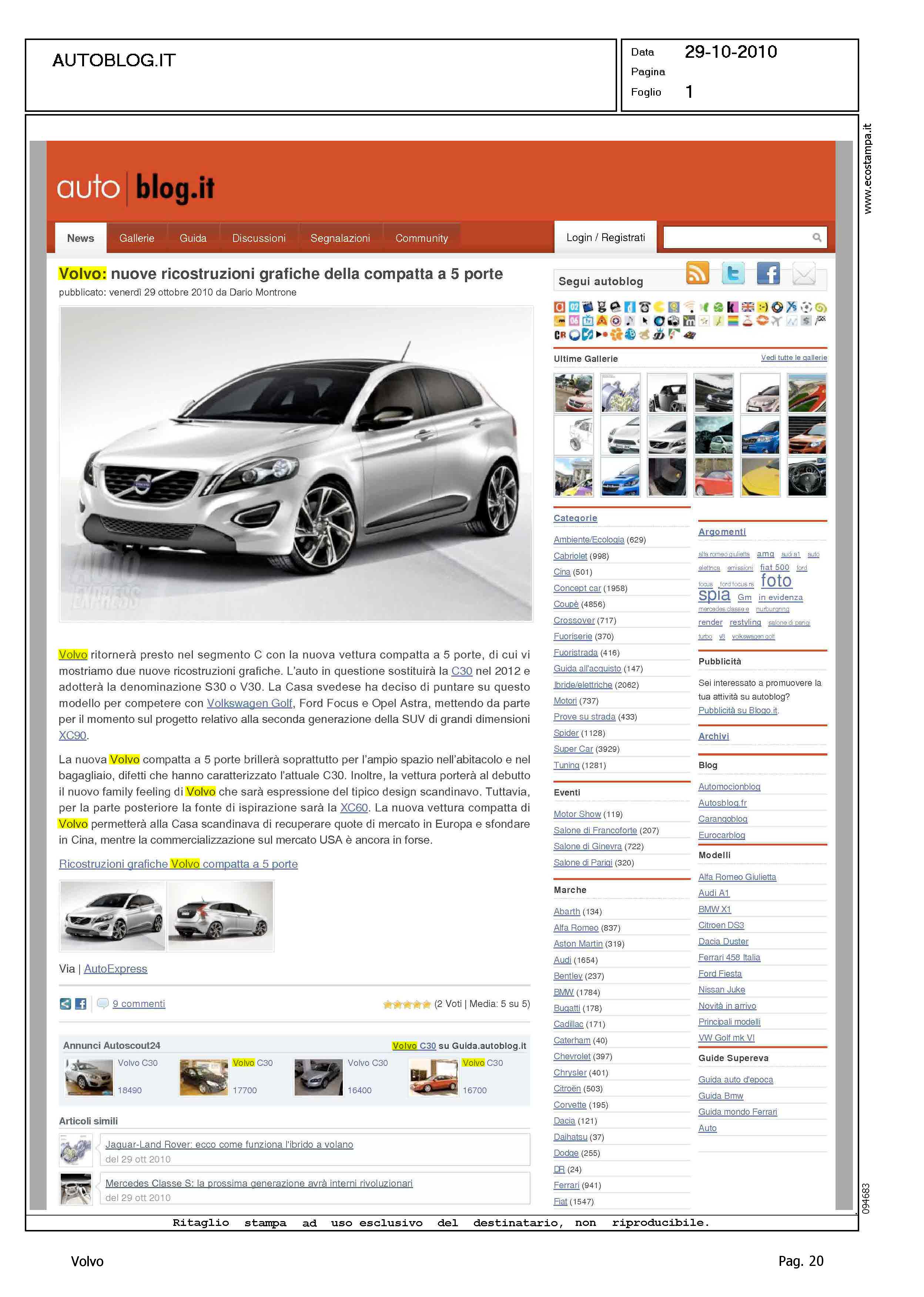 Title: VOLVO: NUOVE RICOSTRUZIONI GRAFICHE DELLA COMPATTA A 5 PORTE