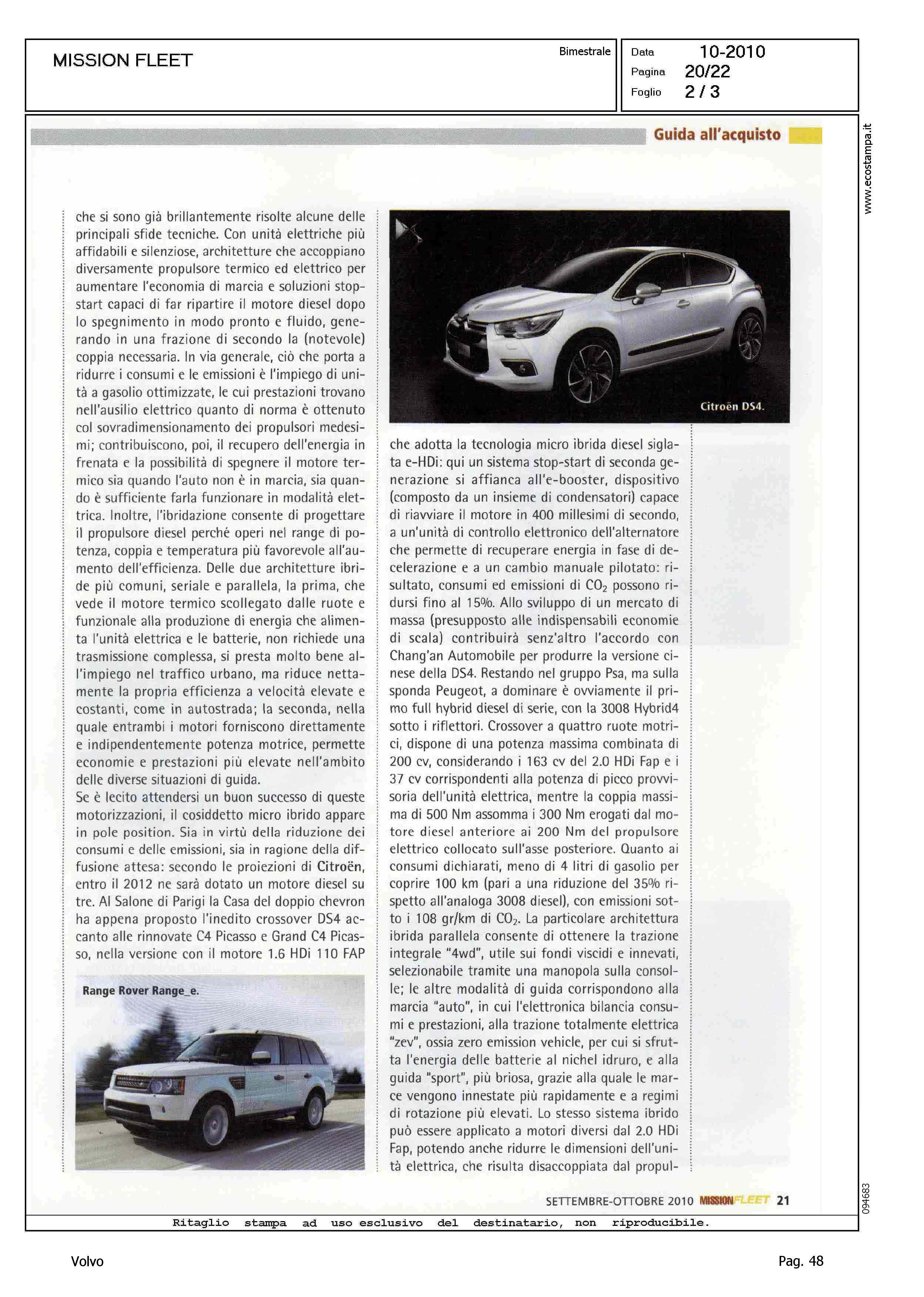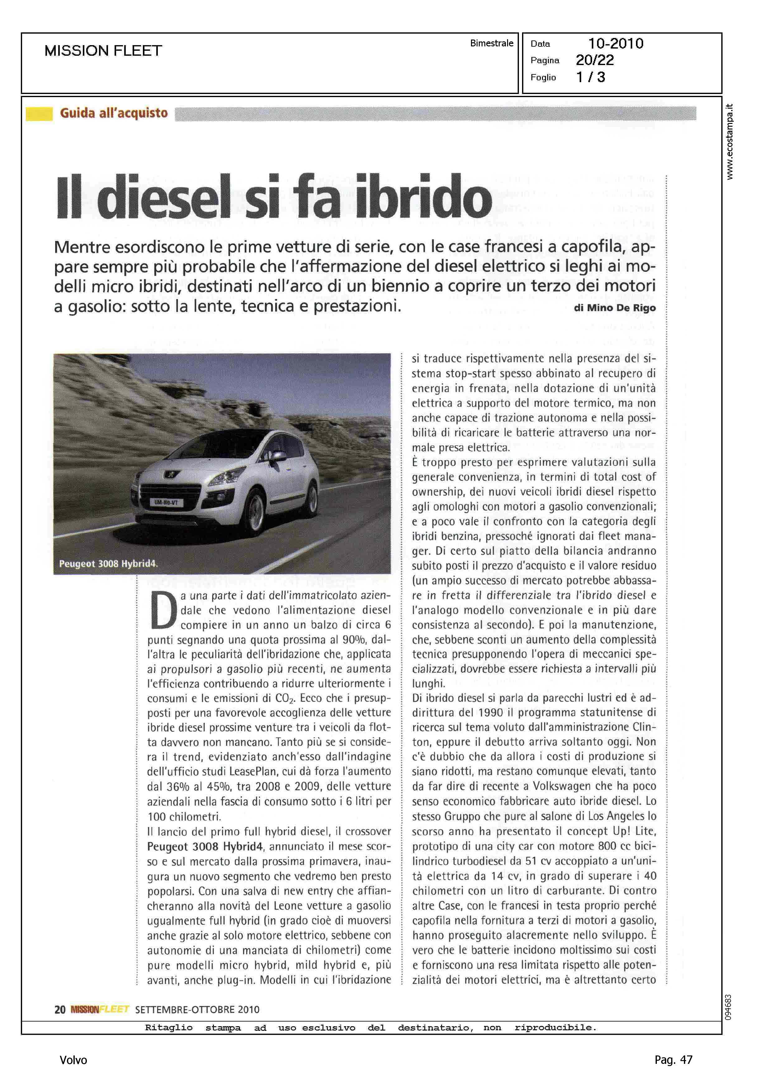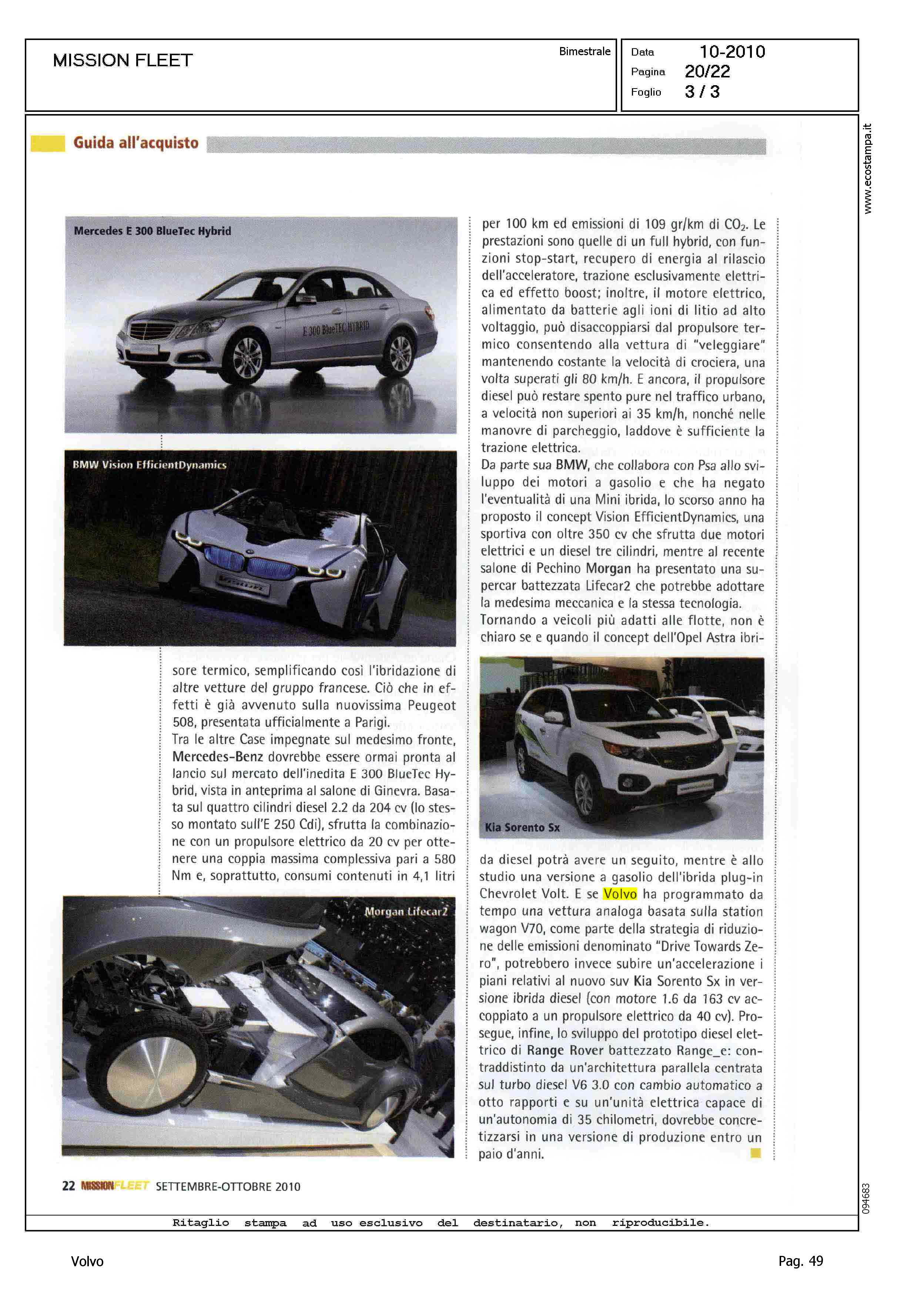 Author: DE RIGO, MINOLine: Corporate Model: Volvo V70 Subject: - Title: IL DIESEL SI FA IBRIDOHighlight: DRIVE TOWARDS ZERO - VOLVO V70 IBRIDA