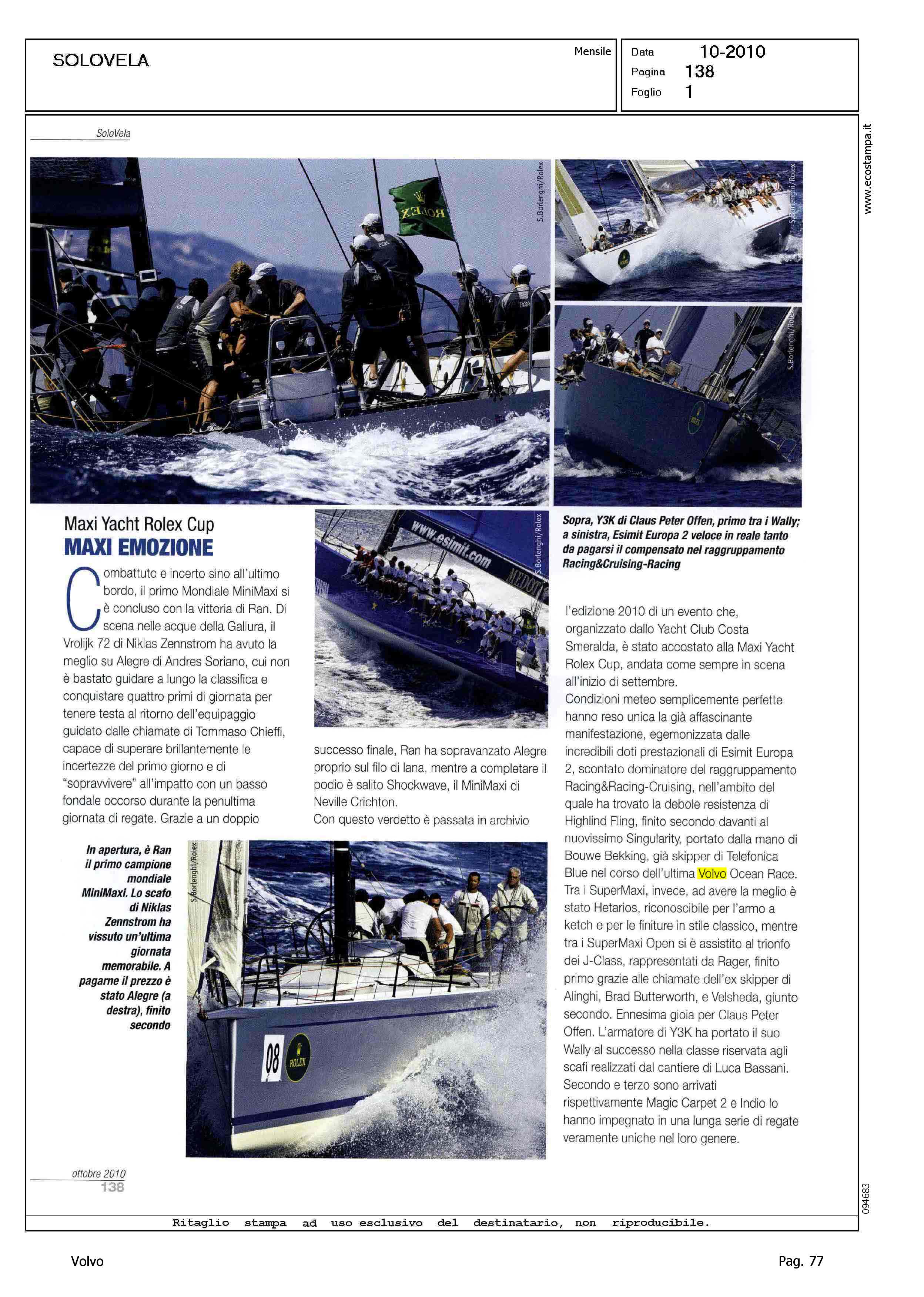 Author: Line: Corporate Model: Corporate Subject: Volvo Ocean Race Title: MAXI EMOZIONEHighlight: BEKKING - TELEFONICA BLUE - VOLVO OCEAN RACE - ROLEX CUP