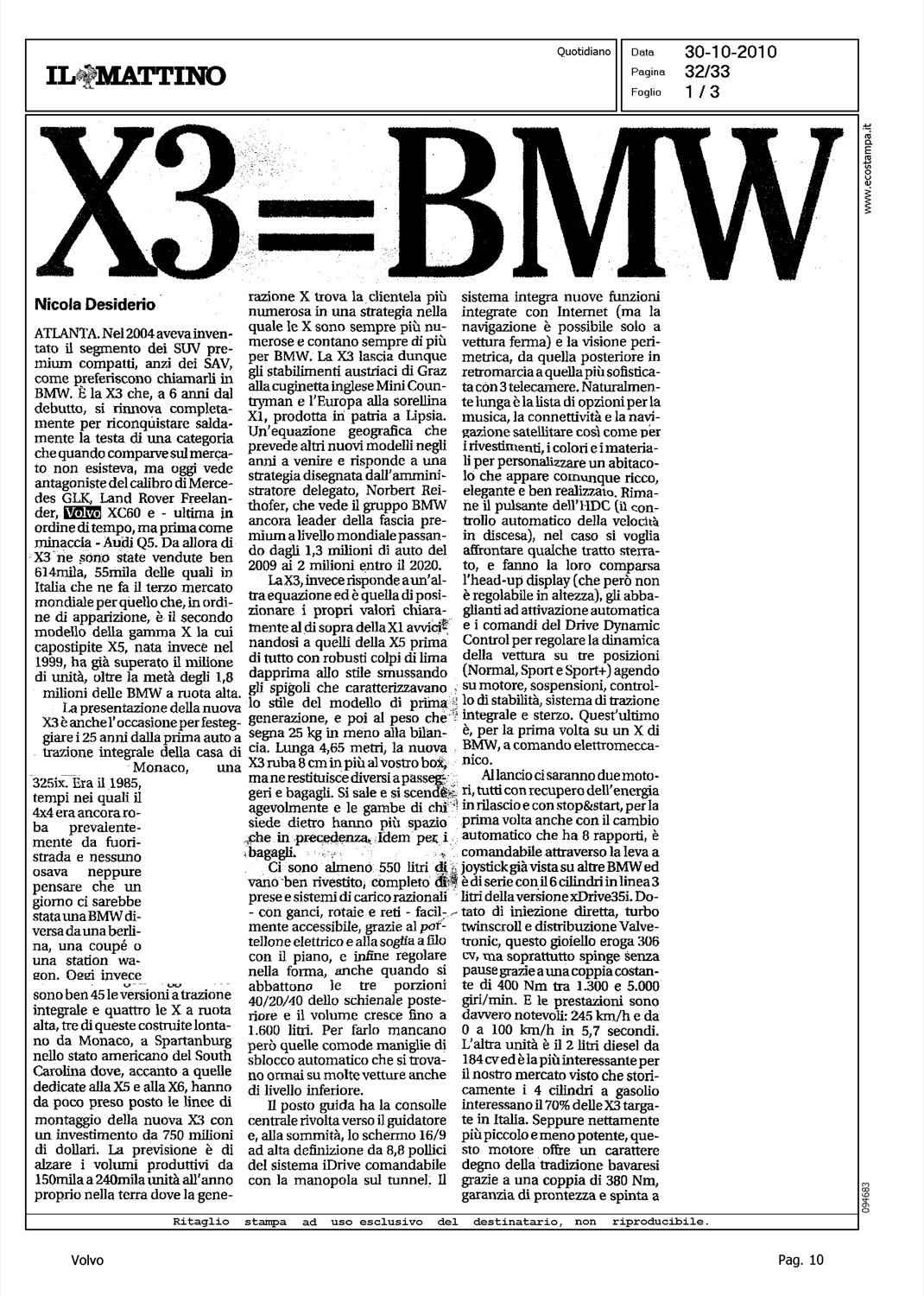 Author: DESIDERIO, NICOLALine: XC60 Model: Subject: - Title: X3=BMWHighlight: VOLVO XC60 - COMPETITOR BMW X3 NUOVO MODELLO