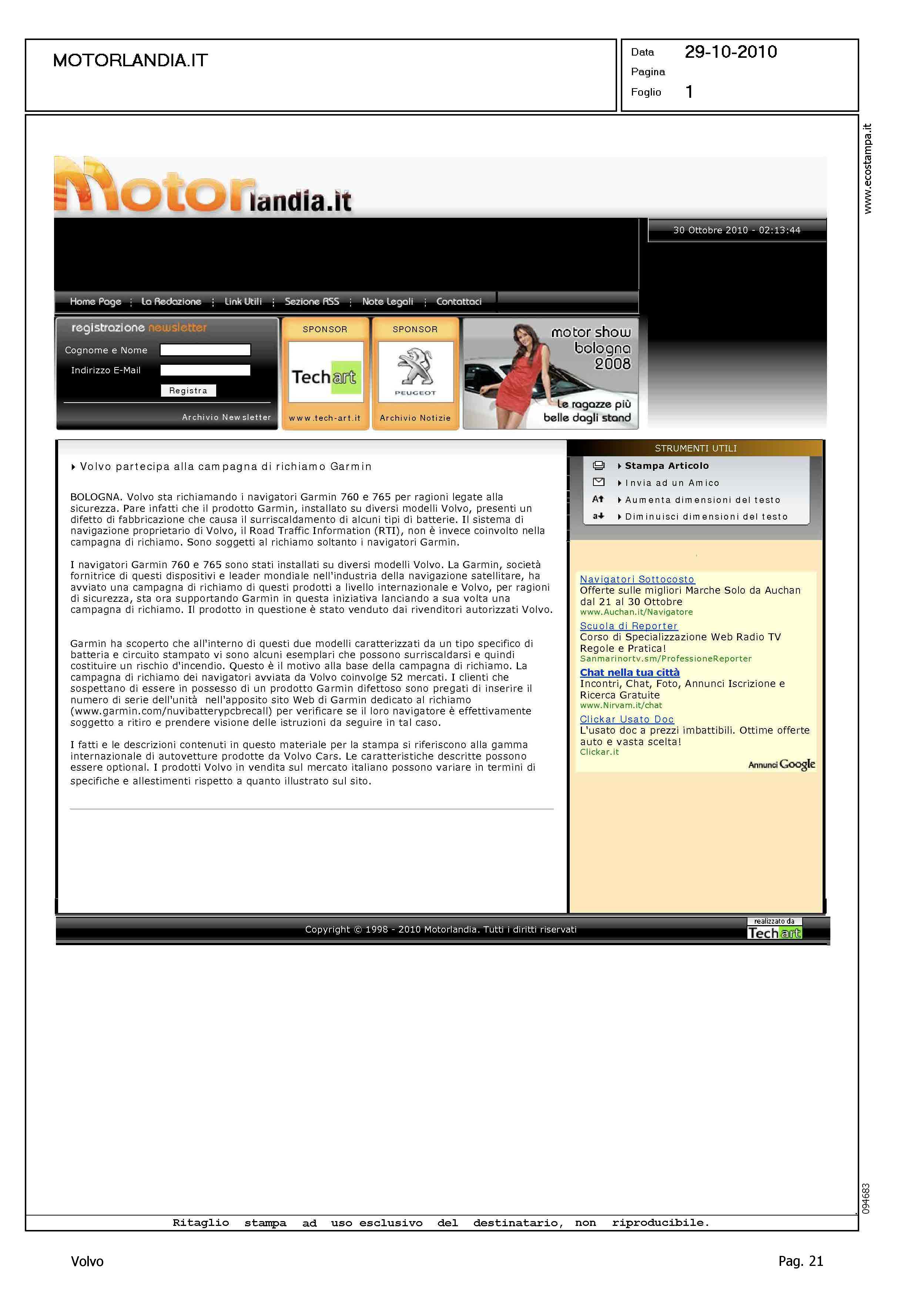 Author: Line: Corporate Model: Corporate Subject: - Title: VOLVO PARTECIPA ALLA CAMPAGNA DI RICHIAMO GARMINHighlight: RICHIAMI - GARMIN