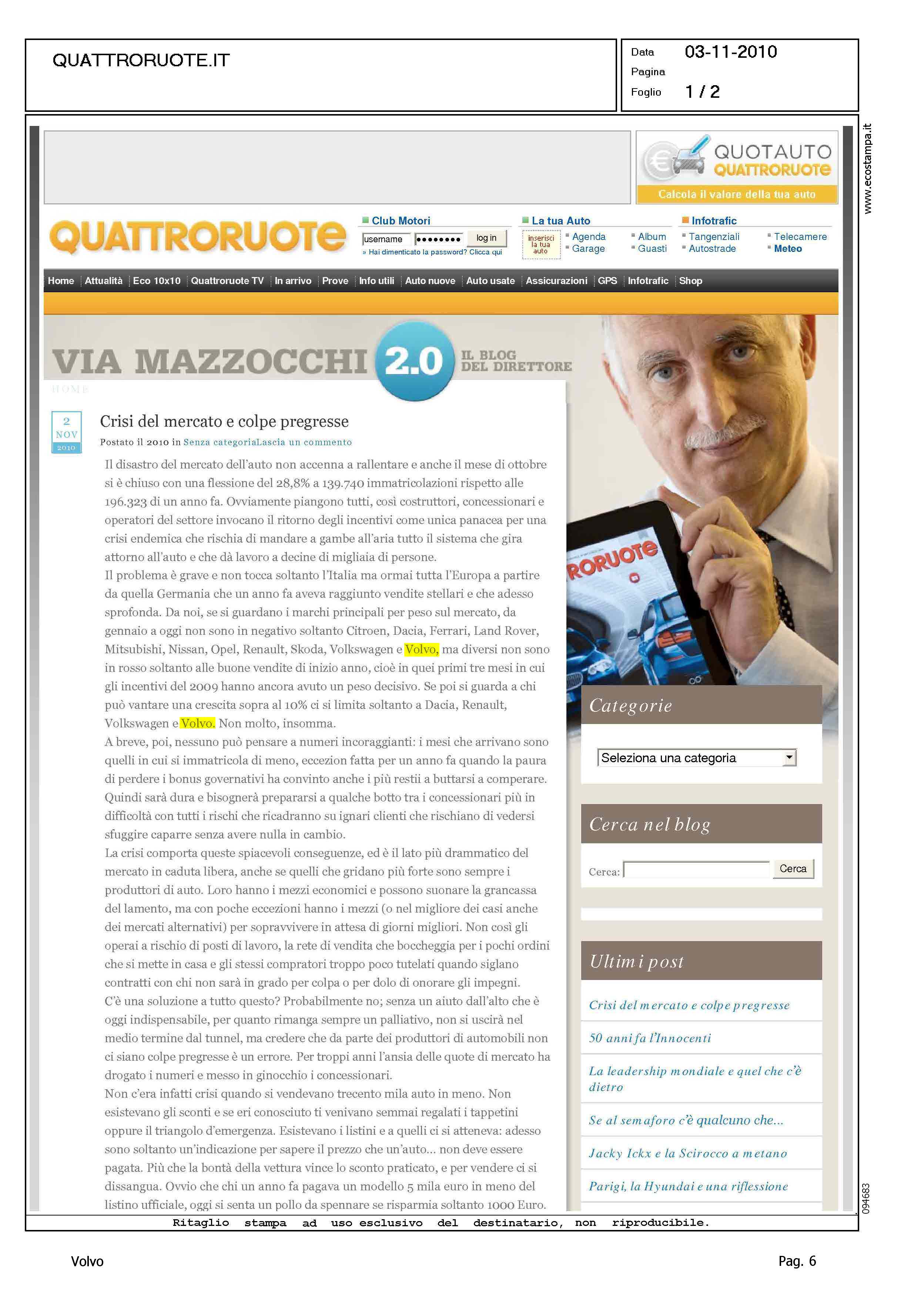Highlight: MERCATO ITALIA - EDITORIALE - BLOG - POSIZIONE VOLVO - QUOTE MERCATO - TREND IN CRESCITA - INCREMENTO SUPERIORE 10%