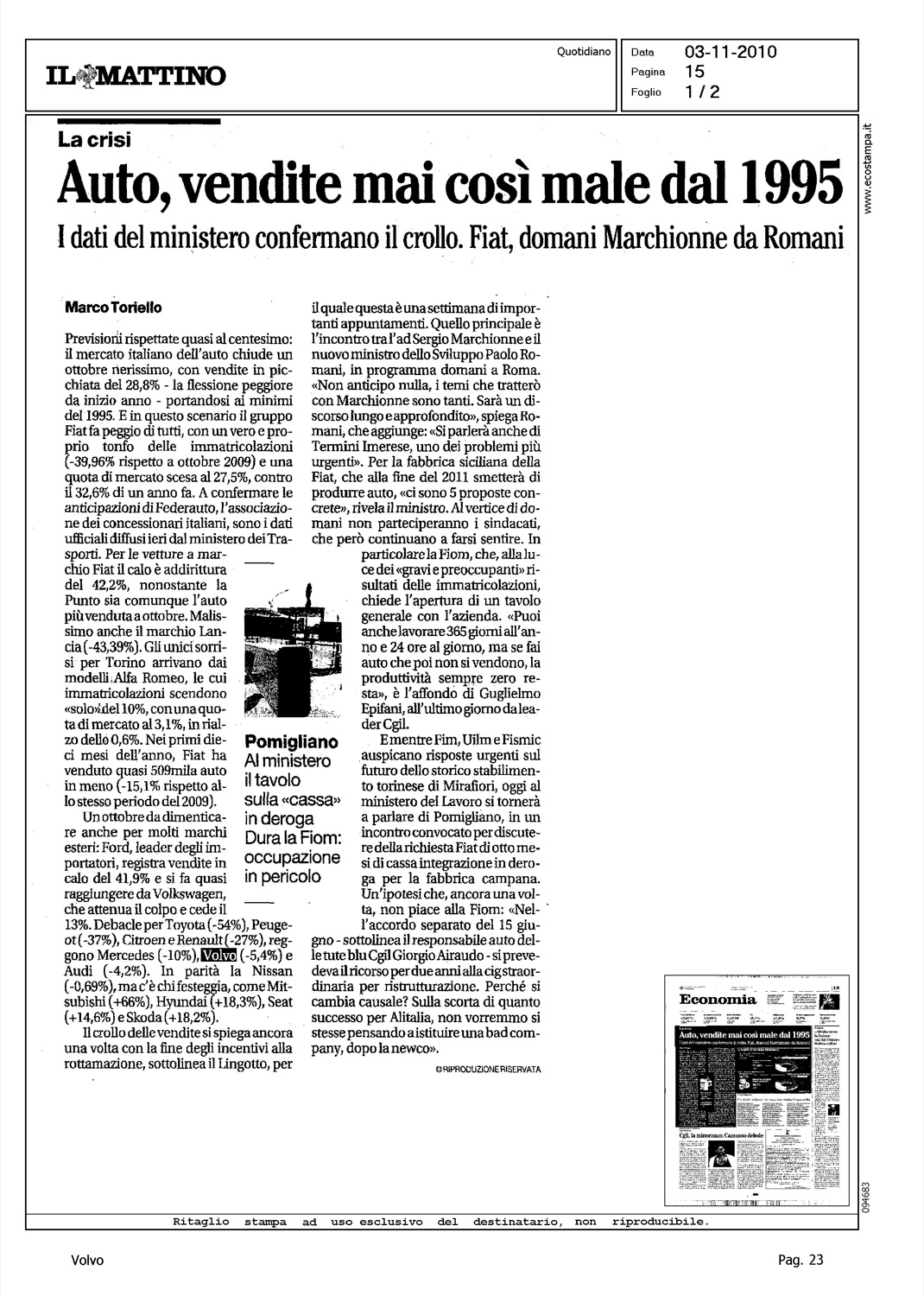 Author: TORIELLO, MARCOLine: Corporate Model: Corporate Subject: - Title: AUTO, VENDITE MAI COSI' MALE DAL 1995Highlight: MERCATO ITALIA - POSIZIONE VOLVO