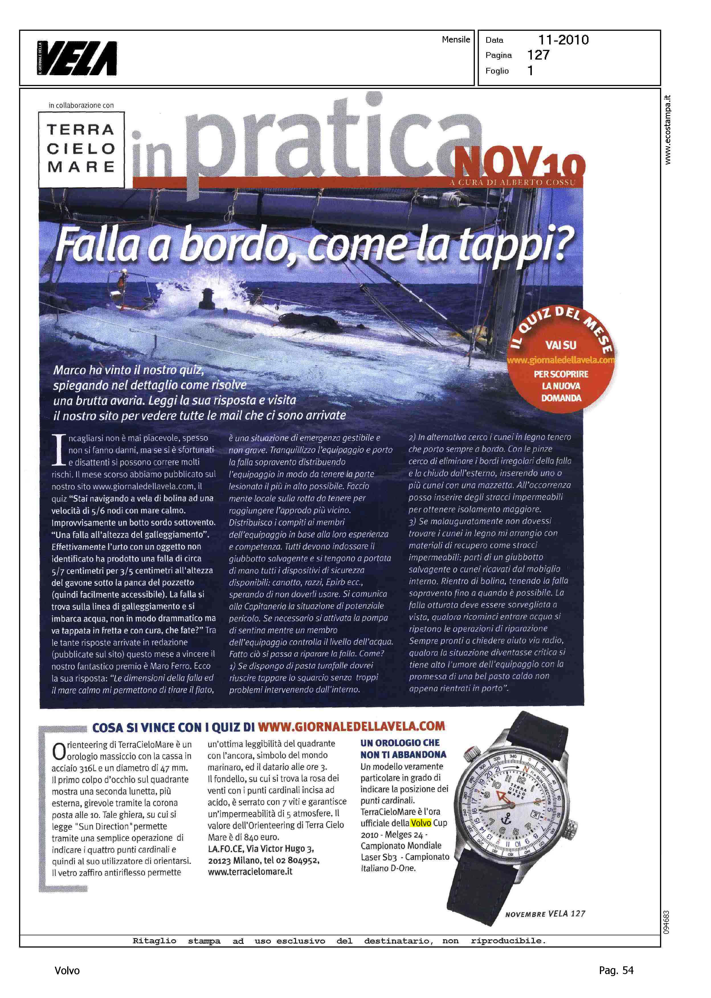 Author: COSSU, ALBERTOLine: Corporate Model: Corporate Subject: Volvo Cup Title: UN OROLOGIO CHE NON TI ABBANDONAHighlight: TERRACIELOMARE SPONSOR VOLVO CUP