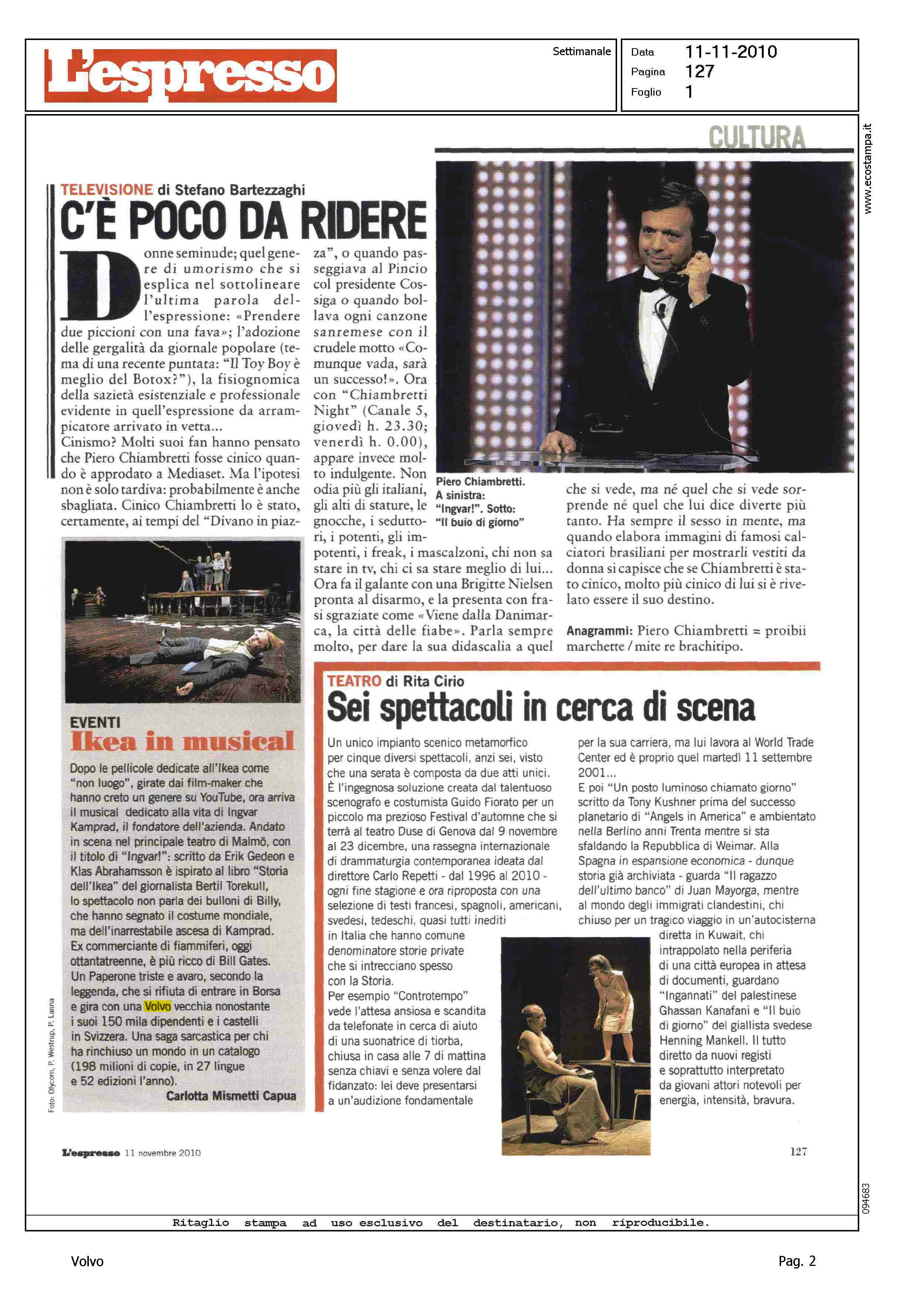 Author: MISMETTI CAPUA, CARLOTTALine: Corporate Model: Corporate Subject: - Title: EVENTI - IKEA IN MUSICALHighlight: EVENTI - VOLVO - IKEA - MUSICAL - CITAZIONE