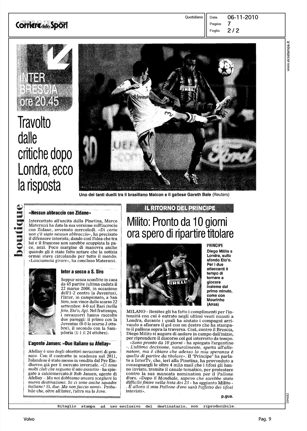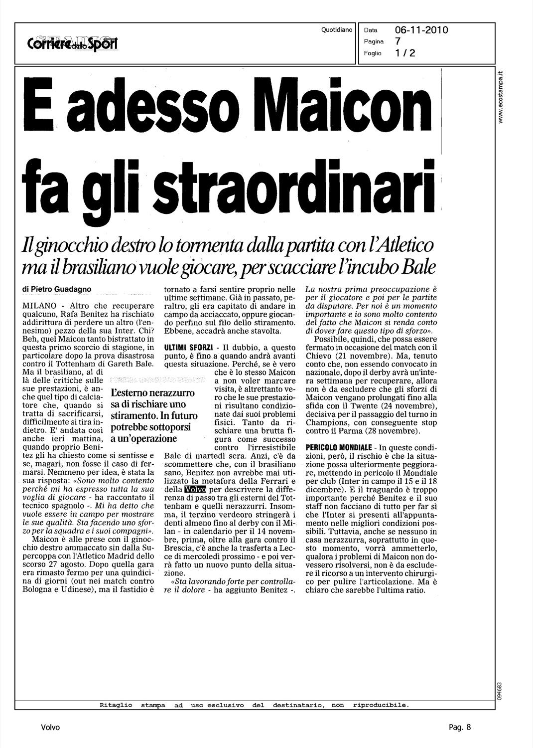 Author: GUADAGNO, PIETROLine: Corporate Model: Corporate Subject: - Title: E ADESSO MAICON FA GLI STRAORDINARIHighlight: DICHIARAZIONE BENITEZ