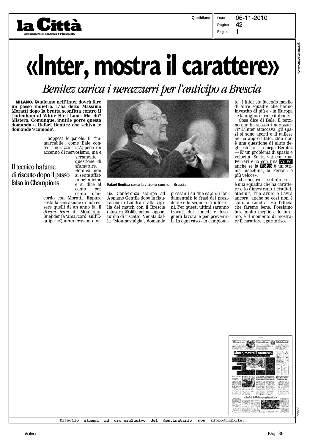 Author: Line: Corporate Model: Corporate Subject: - Title: ''INTER, MOSTRA CARATTERE''Highlight: DICHIARAZIONE BENITEZ
