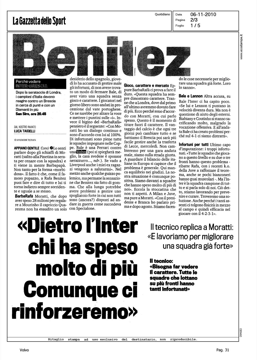 Author: TAIDELLI, LUCALine: Corporate Model: Corporate Subject: - Title: BENITEZHighlight: DICHIARAZIONE BENITEZ