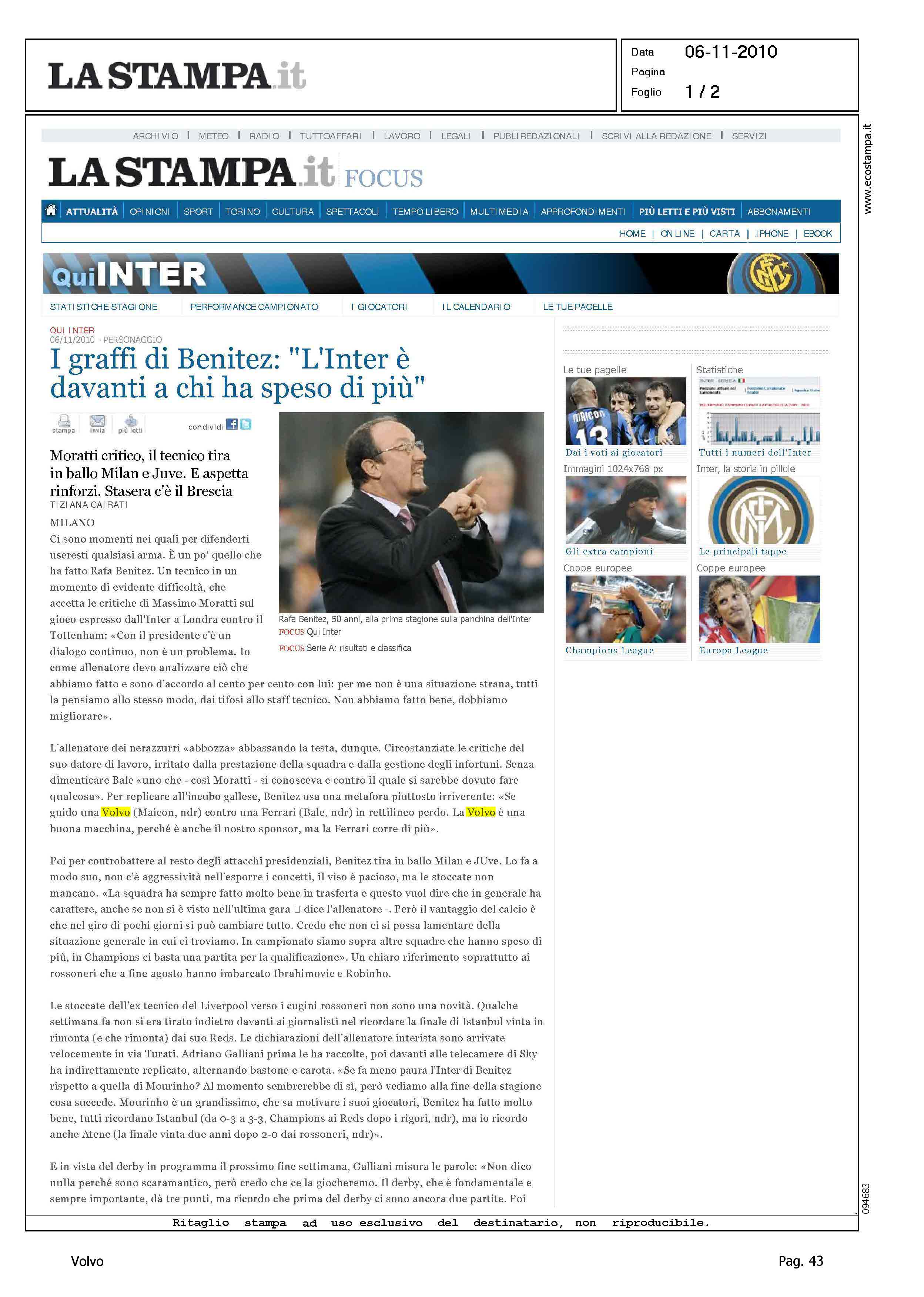 Author: Line: Corporate Model: Corporate Subject: - Title: I GRAFFI DI BENITEZ - ''INTER DAVANTI A CHI HA SPESO DI PIU' ''Highlight: DICHIARAZIONE BENITEZ