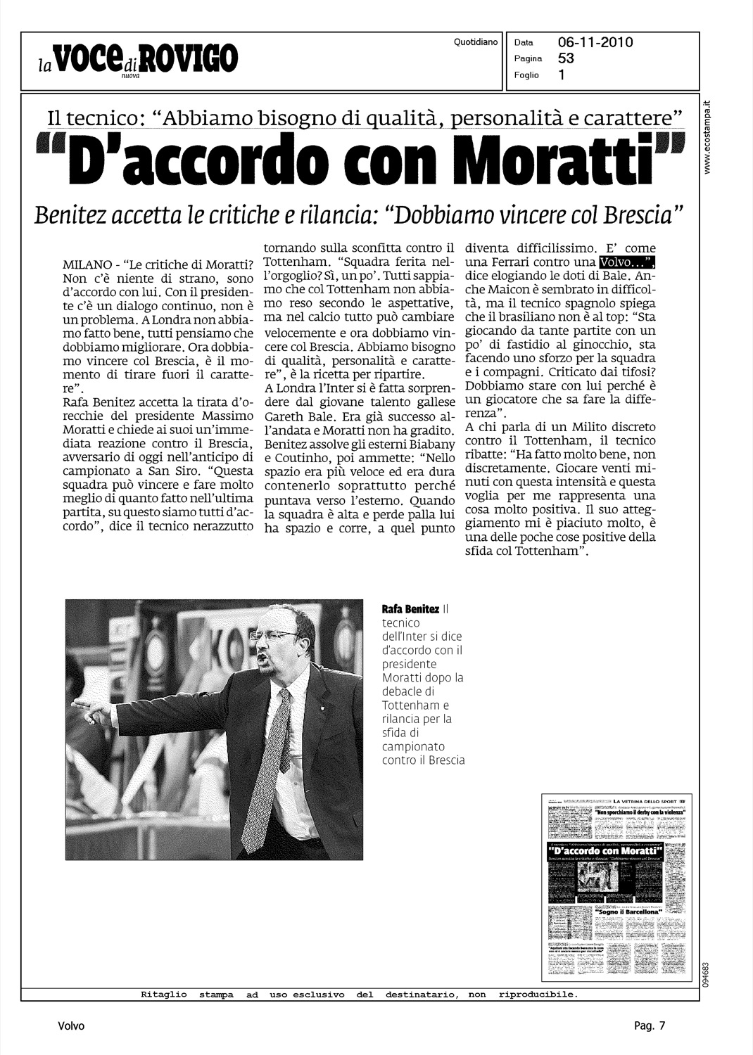 Author: Line: Corporate Model: Corporate Subject: - Title: ''D'ACCORDO CON MORATTI''Highlight: DICHIARAZIONE BENITEZ