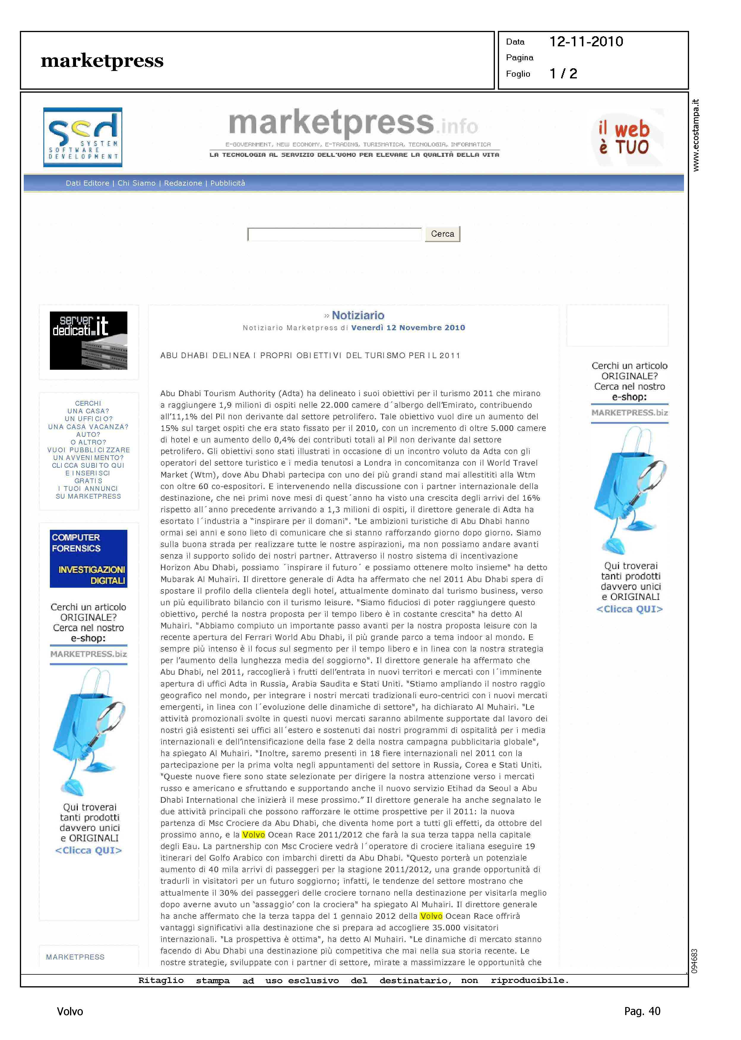 Author: Line: Corporate Model: Corporate Subject: Volvo Ocean Race Title: ABU DHABI DELINEA I PROPRI OBIETTIVI DEL TURISMO PER IL 2011Highlight: VOLVO OCEAN RACE - REGATA 2011-12- ABU DHABI
