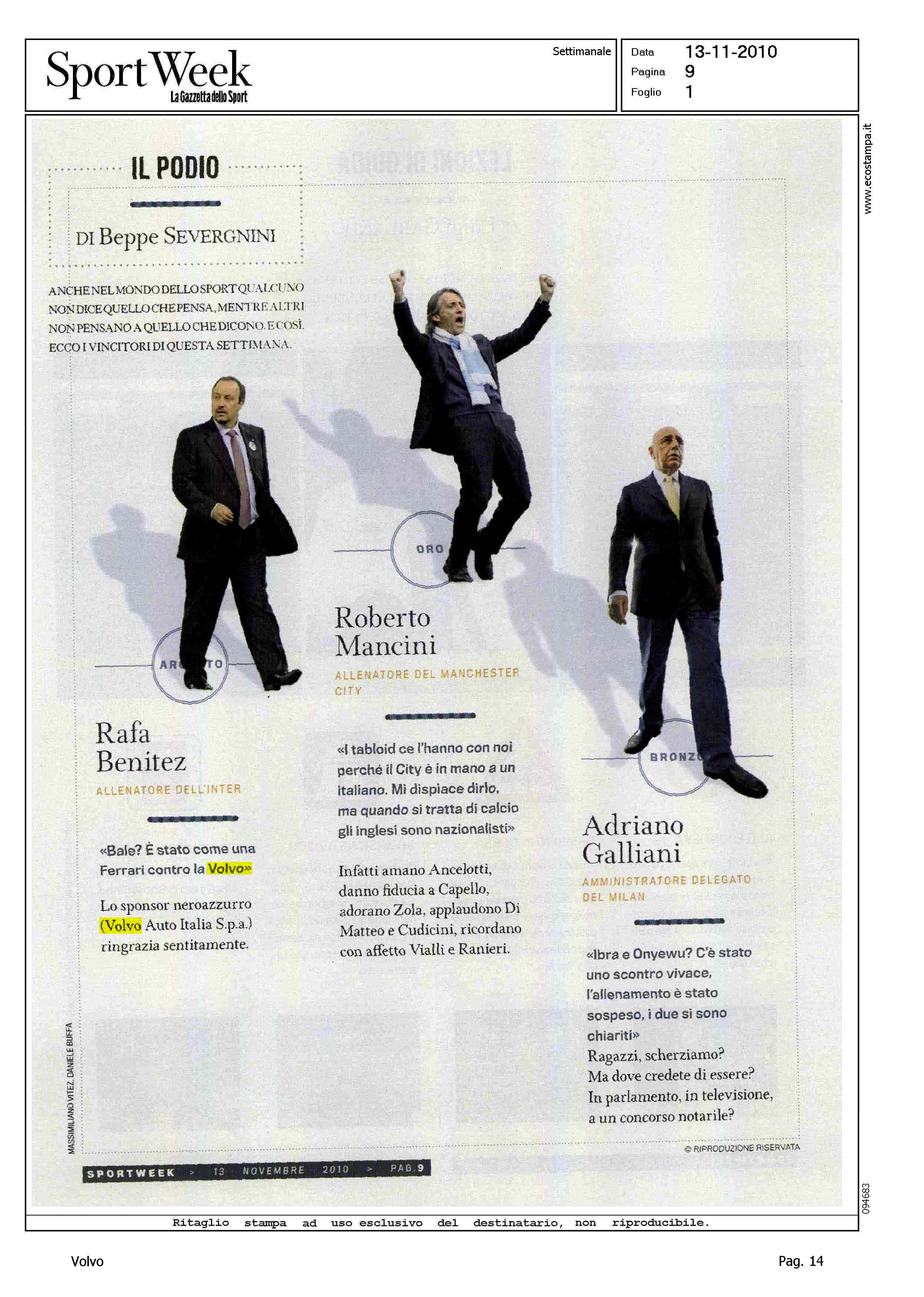 Author: SEVERGNINI, BEPPELine: Corporate Model: Corporate Subject: - Title: IL PODIOHighlight: DICHIARAZIONE BENITEZ