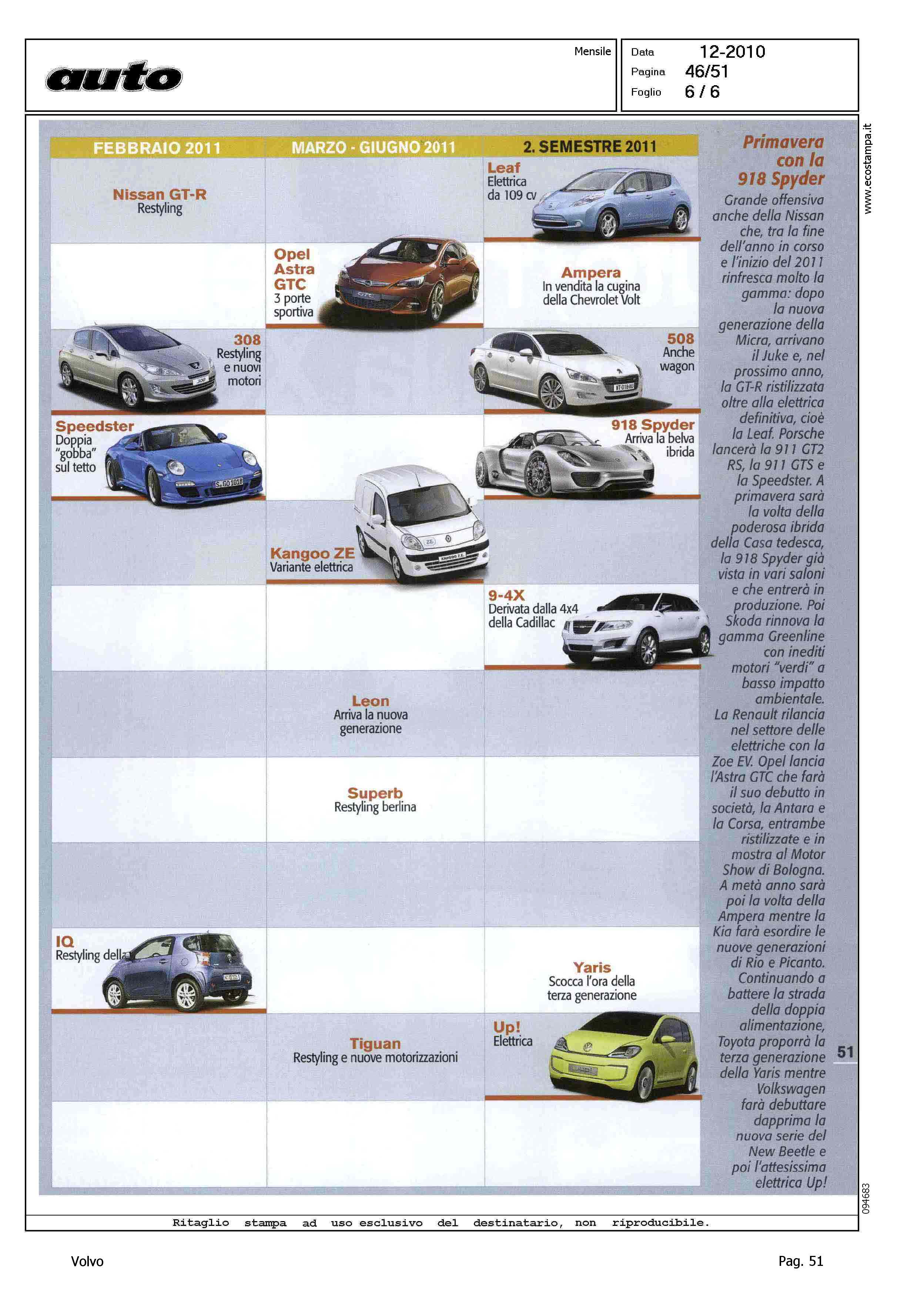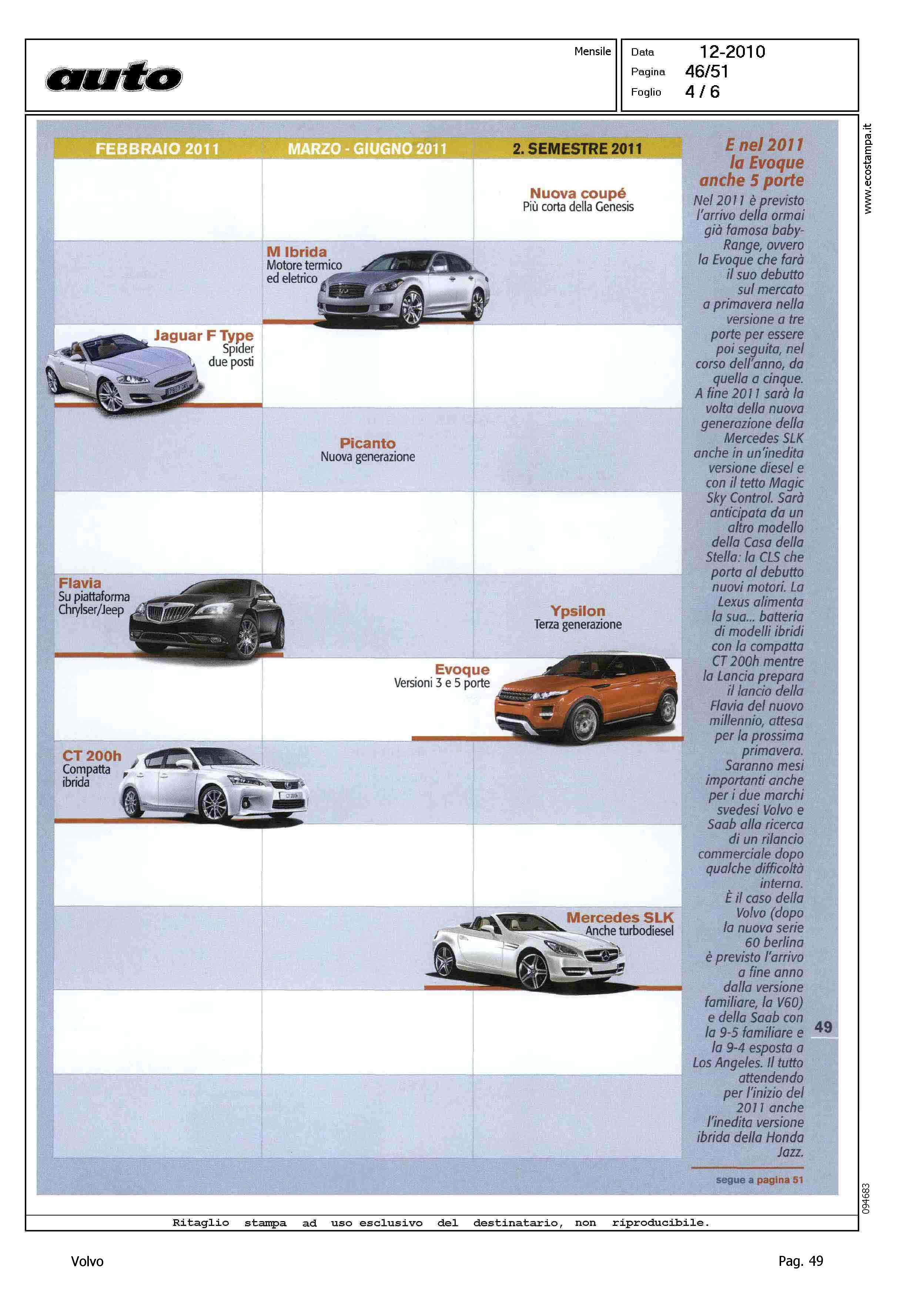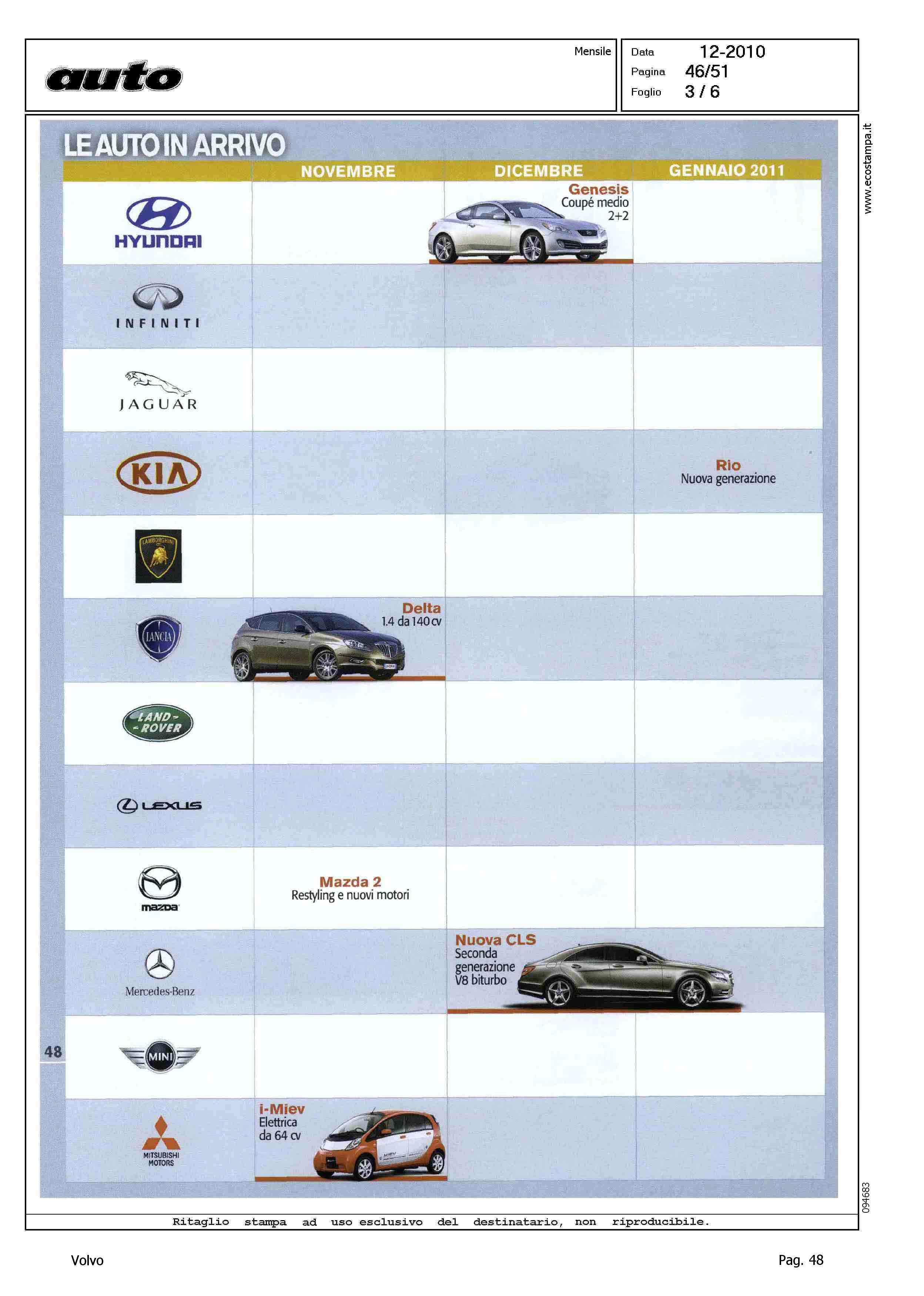 Author: Line: Corporate Model: Corporate Subject: - Title: LE AUTO IN ARRIVOHighlight: NOVITA' - TABELLA USCITE