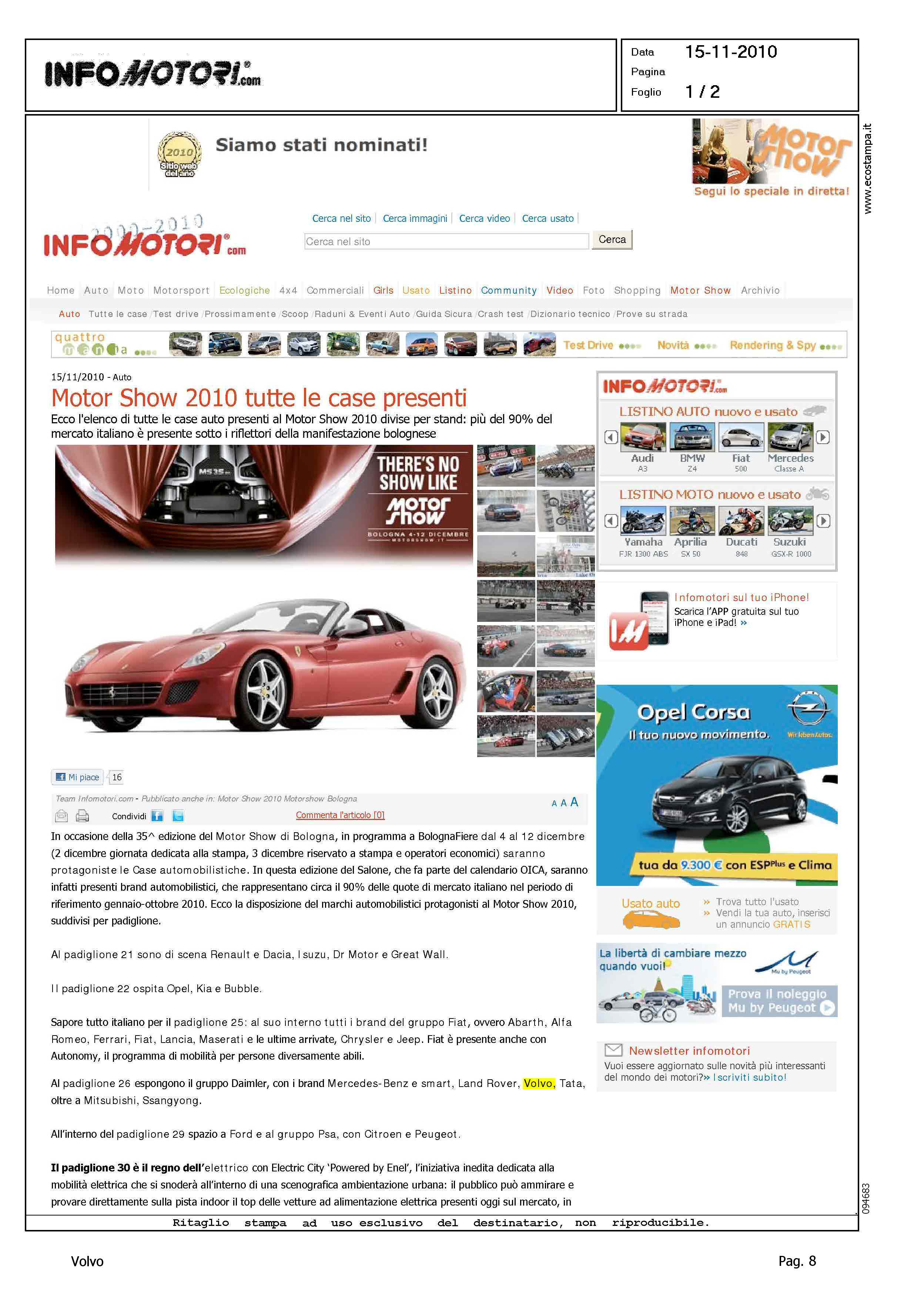 Author: Line: Corporate Model: Corporate Subject: - Title: MOTOR SHOW 2010 TUTTE LE CASE PRESENTIHighlight: MOTORSHOW BOLOGNA - BRAND PRESENTI