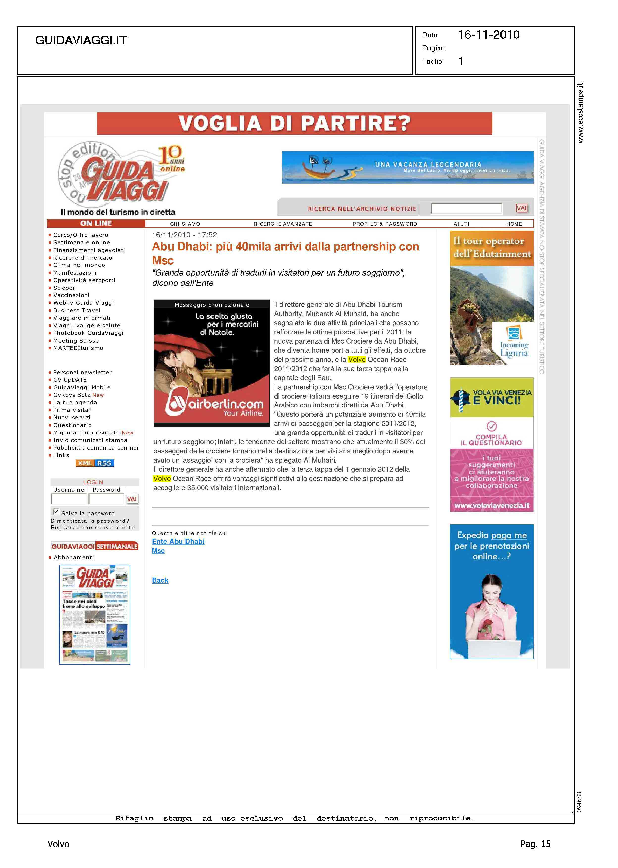 Author: Line: Corporate Model: Corporate Subject: Volvo Ocean Race Title: ABU DHABI: PIU' DI 40MILA ARRIVI DALLA PARTNERSHIP CON MSCHighlight: REGATA 2011-12
