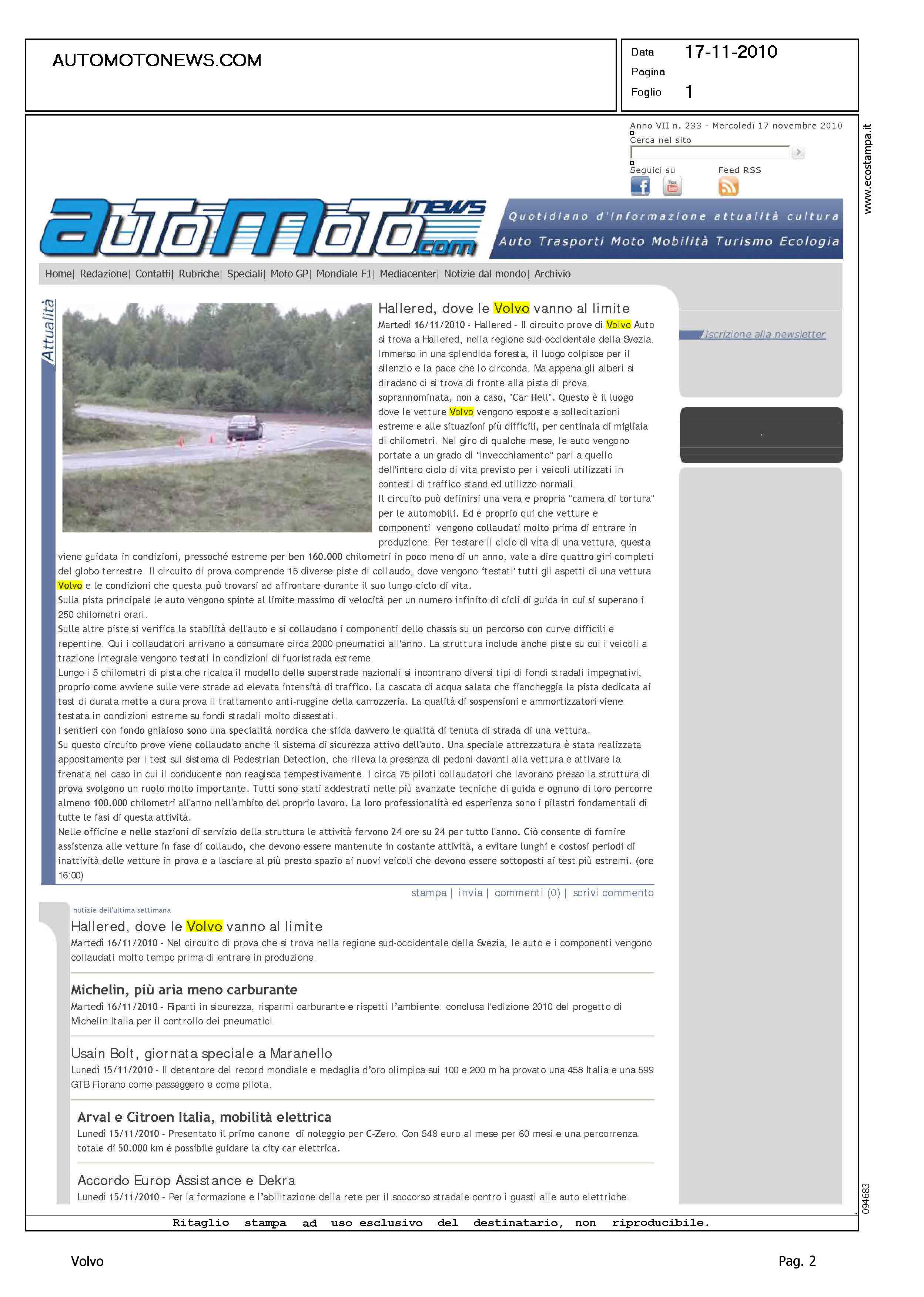 Author: Line: Corporate Model: Corporate Subject: - Title: HALLERED, DOVE LE VOLVO VANNO AL LIMITEHighlight: HALLERED