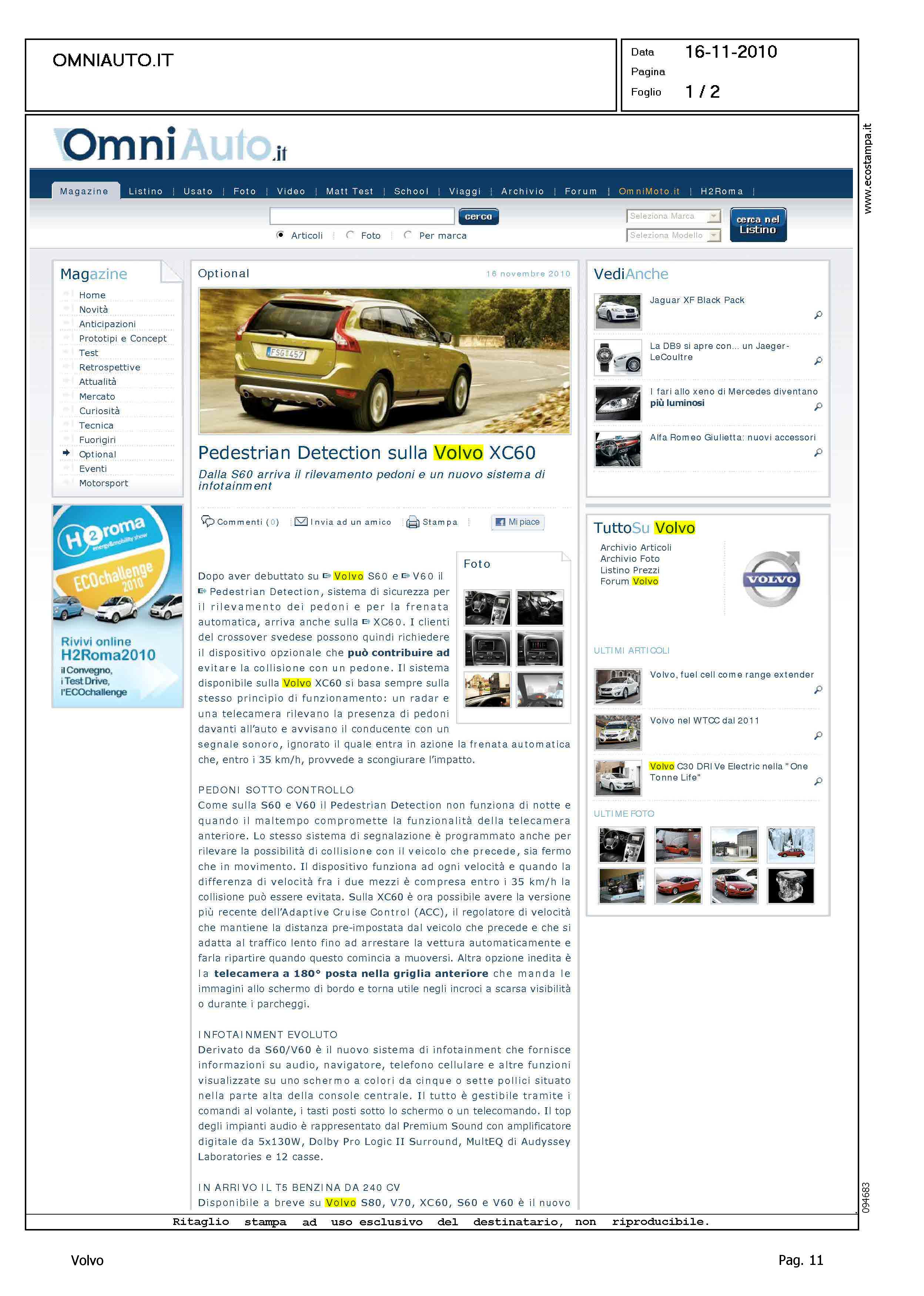 Author: Line: XC60 Model: Subject: - Title: PEDESTRIAN DETECTION SULLA VOLVO XC60Highlight: SICUREZZA - PEDESTRIAN DETECTION - DESCRIZIONE DEL FUNZIONAMENTO - ABITACOLO - INTERNI - ACCESSORI - MOTORI - CAMBIO