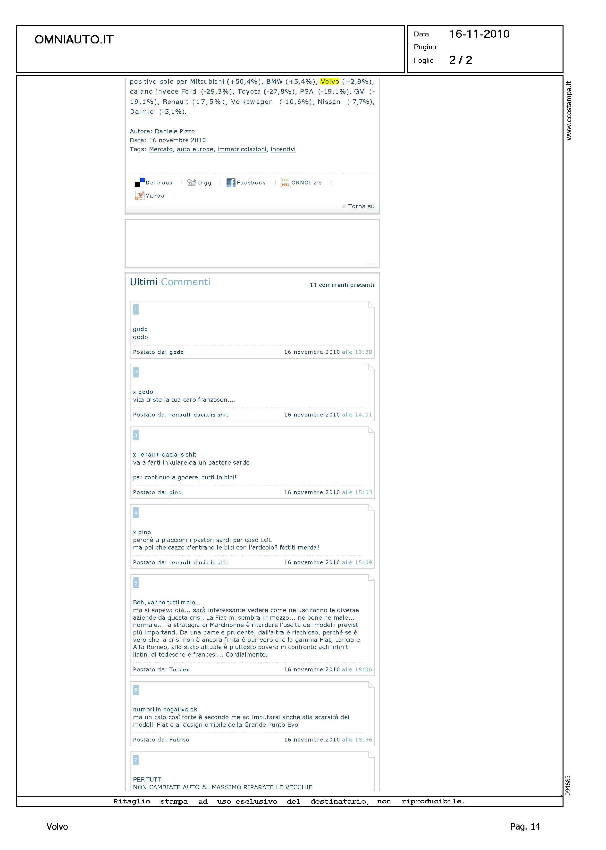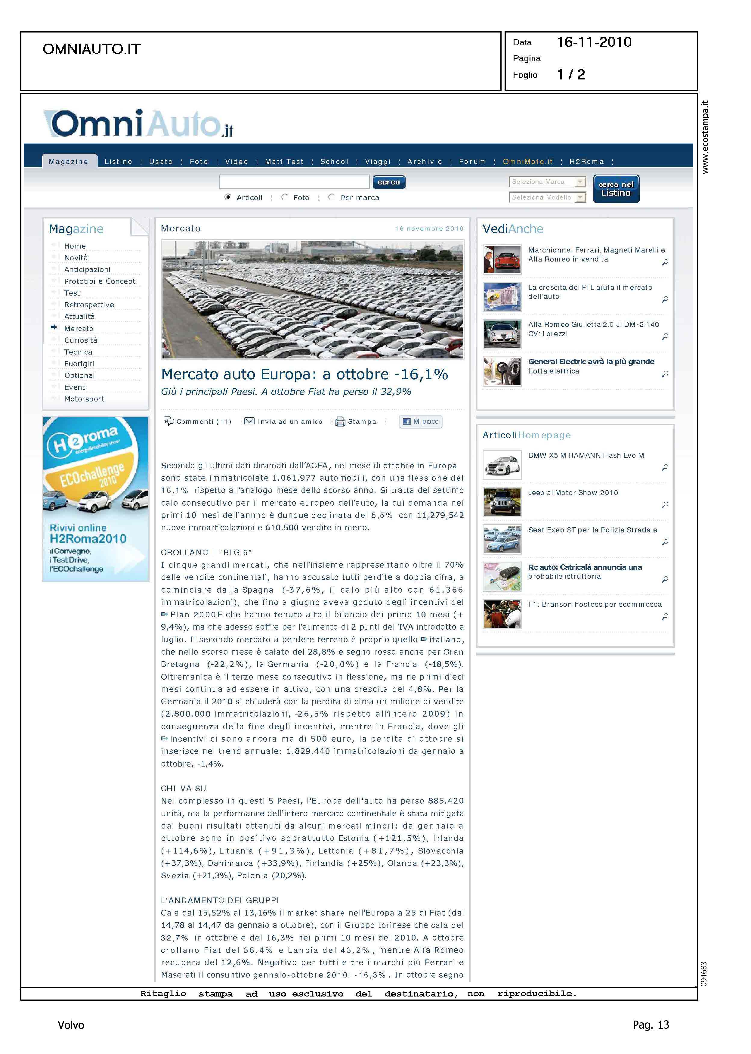 Author: Line: Corporate Model: Corporate Subject: - Title: MERCATO AUTO EUROPA: A OTTOBRE -16,1%Highlight: MERCATO EUROPA - TABELLA - POSIZIONE VOLVO