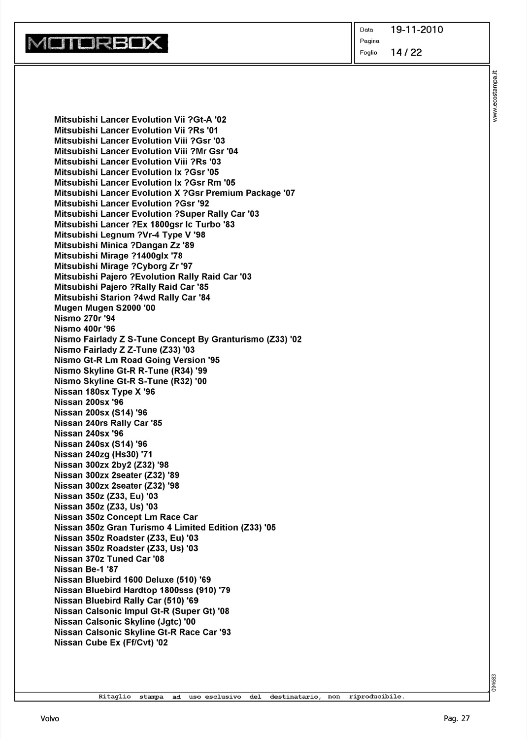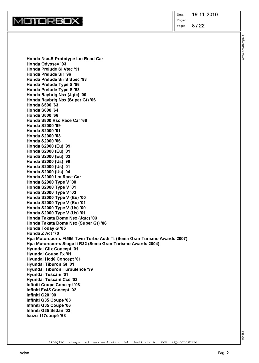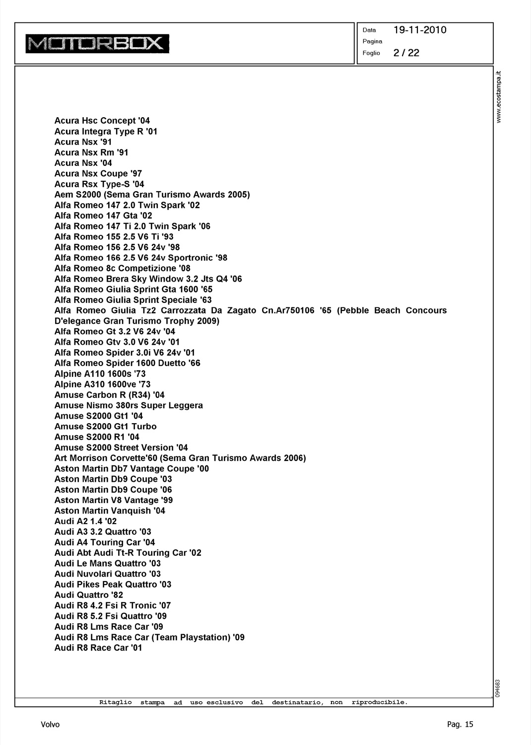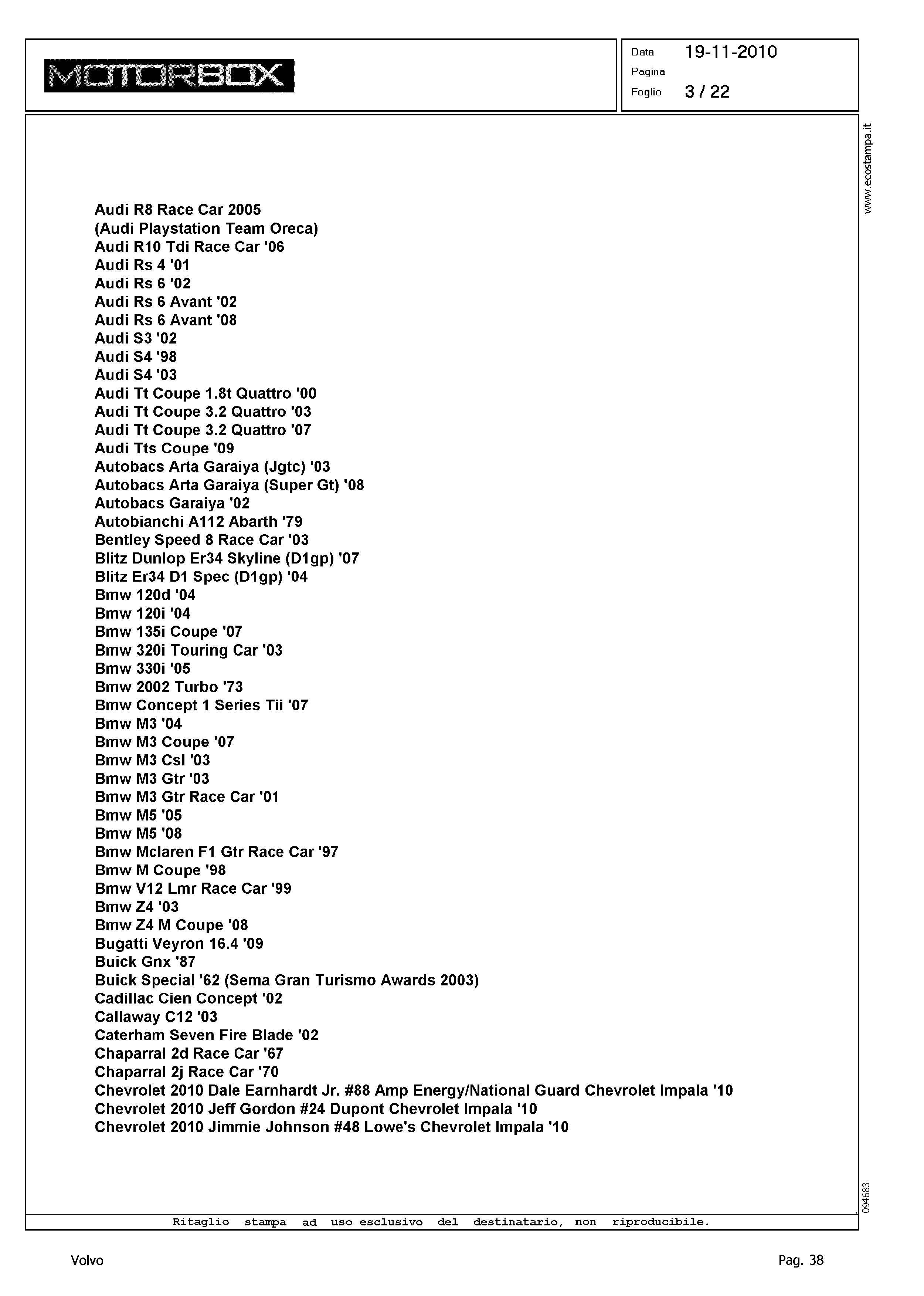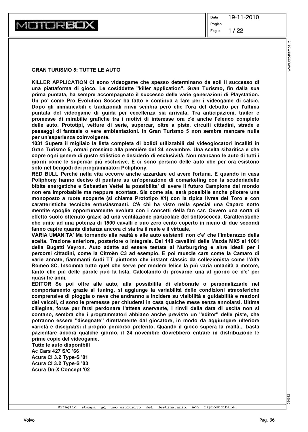 Author: Line: Corporate Model: Corporate Subject: - Title: GRAN TURISMO 5 2011: TUTTE LE AUTOHighlight: GAME - PLAYSTATION - VOLVO 240 GLT ESTATE '88 - VOLVO C30 R DESIGN '09 - VOLVO S60 T5 SPORT '03