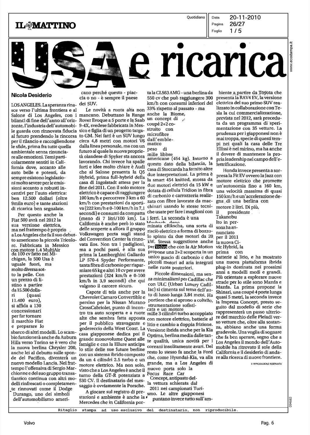 Author: DESIDERIO, NICOLALine: Corporate Model: Corporate Subject: - Title: USA E RICARICAHighlight: VOLVO AIR MOTION - DESIGN CHALLENGE 2010
