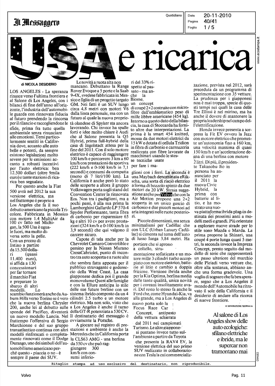 Author: DESIDERIO, NICOLALine: Corporate Model: Corporate Subject: - Title: USA E RICARICAHighlight: VOLVO AIR MOTION - DESIGN CHALLENGE 2010