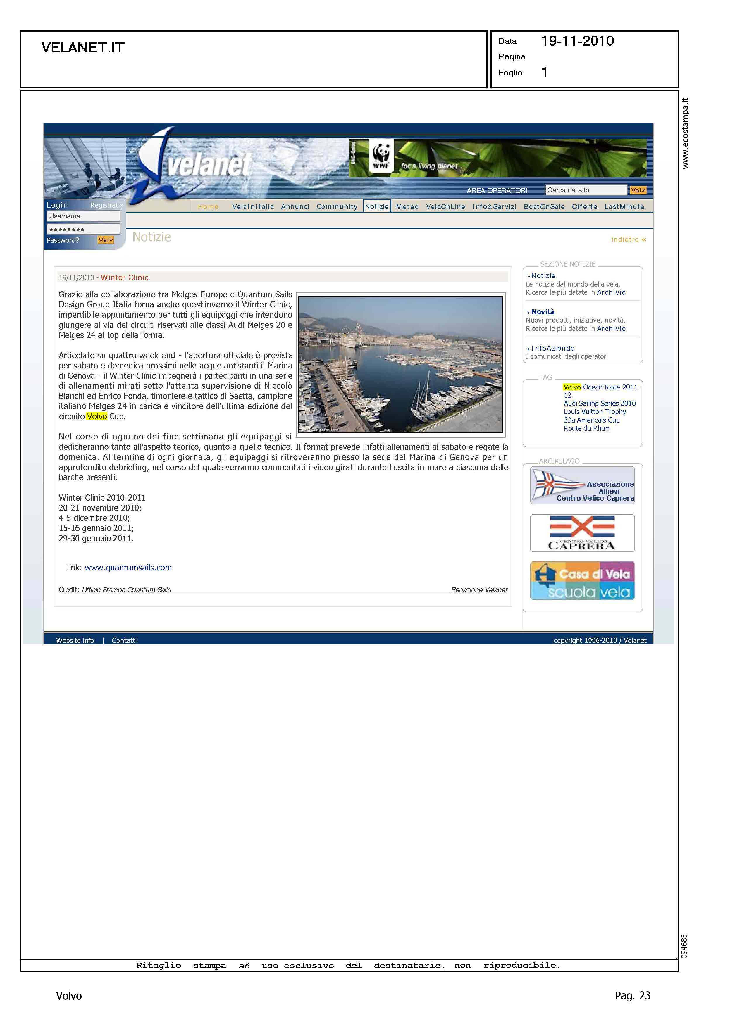 Author: Line: Corporate Model: Corporate Subject: Volvo Cup Title: WINTER CLINICHighlight: WINTER CLINIC MELGES 24 - QUANTUM SAILS DESIGN GROUP