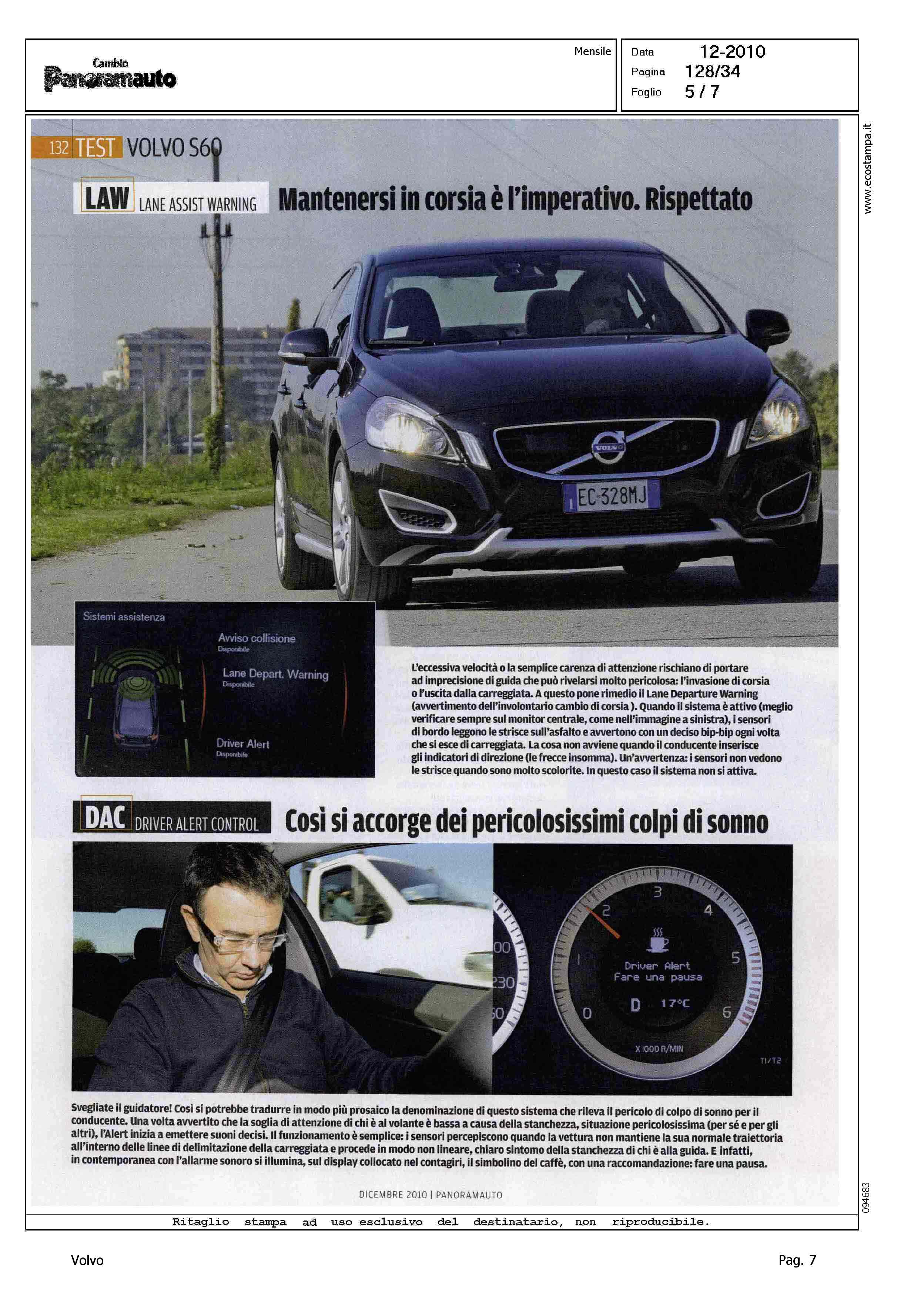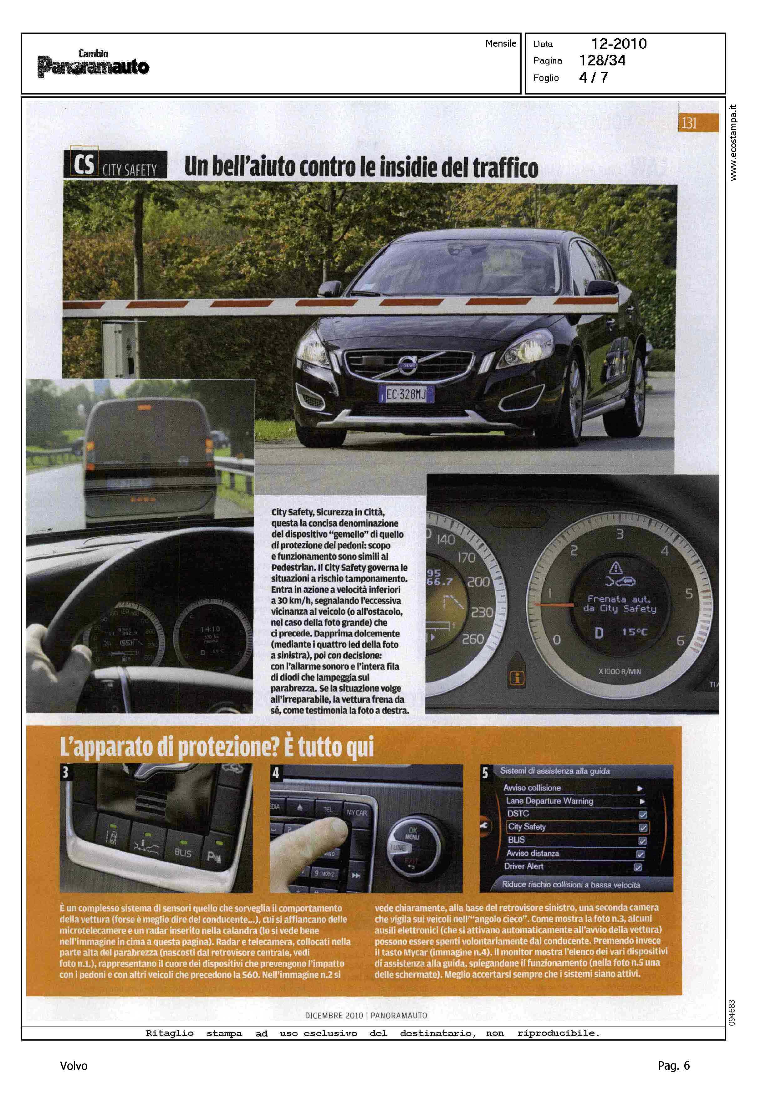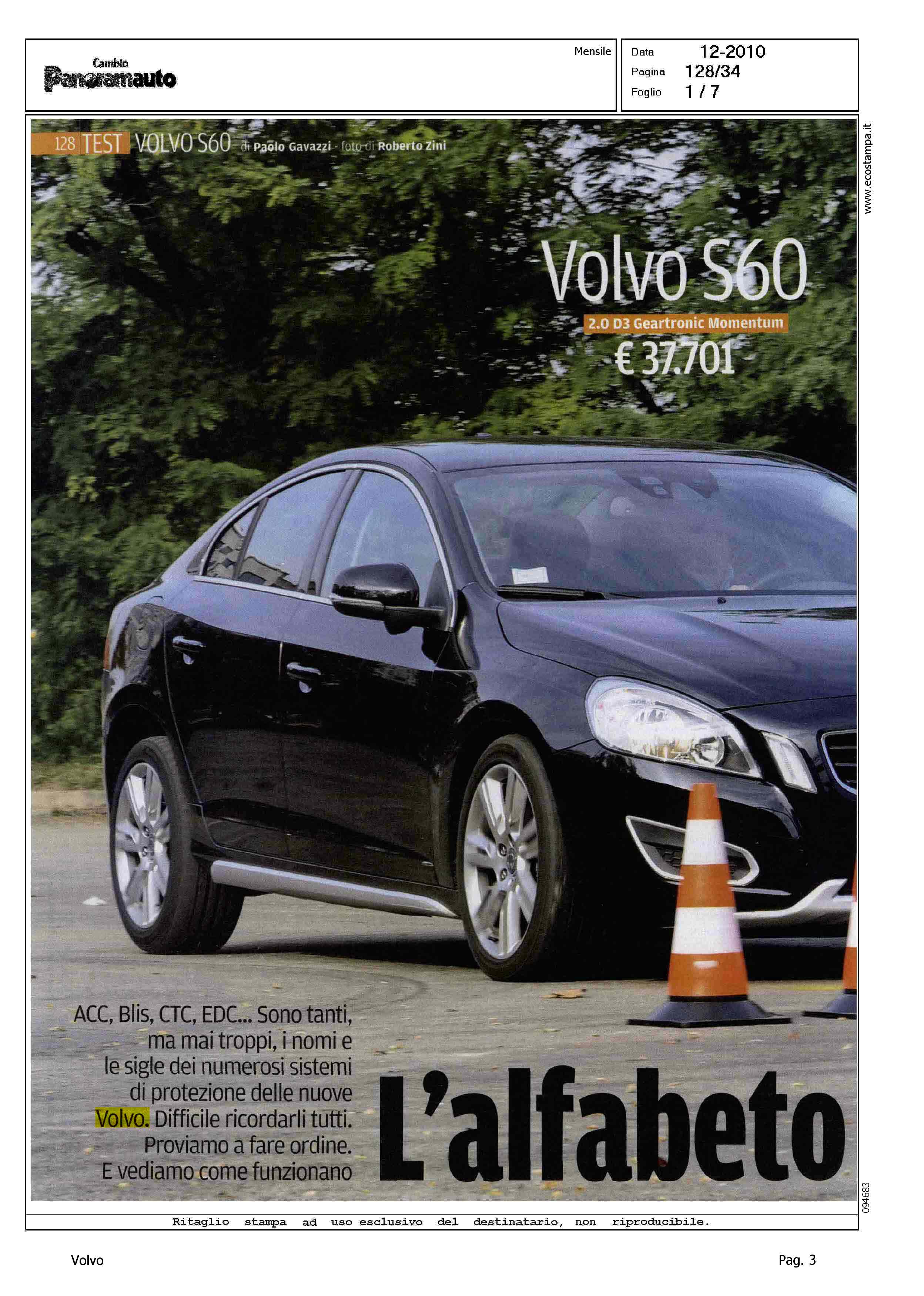 Highlight: (USCITA DICEMBRE) - TEST DRIVE - VOLVO S60 2.0 D3 GEARTRONIC MOMENTUM - SOTTOTITOLO: ACC, BLIS, CTC, EDC... SONO TANTI, MA MAI TROPPI, I NOMI E LE SIGLE DEI NUMEROSI SISTEMI DI PROTEZIONE DELLE NUOVE VOLVO. DIFFICILE RICORDARLI TUTTI. PROVIAMO A FARE ORDINE. E VEDIAMO COME FUNZIONANO - BOX, DIDASCALIE, TIPOLOGIA DISPOSITIVO, DESCRIZIONE FUNZIONAMENTO - PEDESTRIAN DETECTION - CITY SAFETY - LANE ASSIST WARNING - DRIVER ALERT CONTROL - ADAPTIVE CRUISE CONTROL - BLIND SPOT INFORMATION SYSTEM - ADVANCED STABILITY CONTROL - ENGINE DRAG CONTROL - SISTEMI DI FRENATA - CORPO ARTICOLO: SICUREZZA