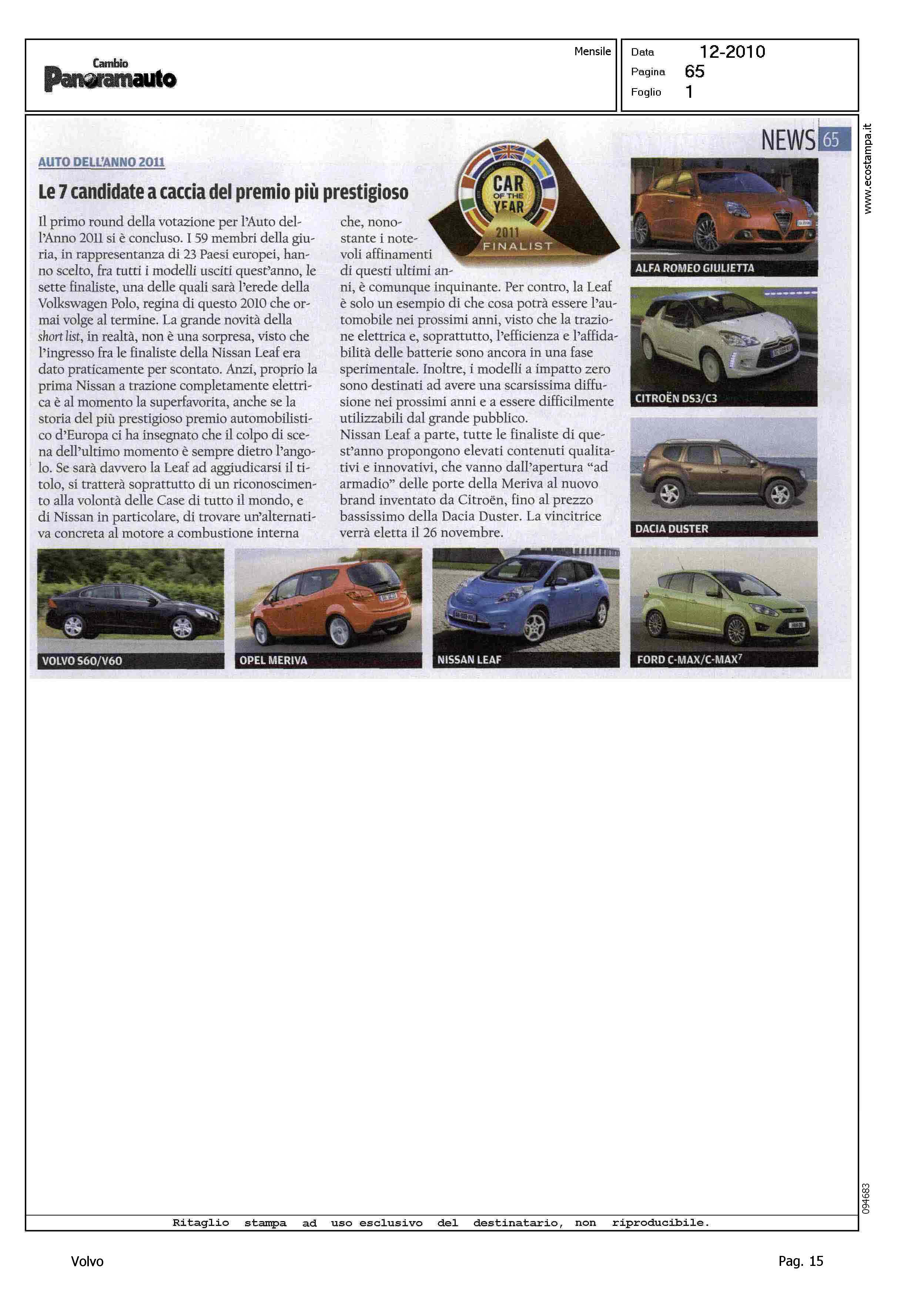 Author: Line: Corporate Model: Corporate Subject: - Title: LE 7 CANDIDATE A CACCIA DEL PREMIO PIU' PRESTIGIOSOHighlight: (USCITA DICEMBRE) - AUTO DELL'ANNO 2011 - FINALISTE - VOLVO S60/V60