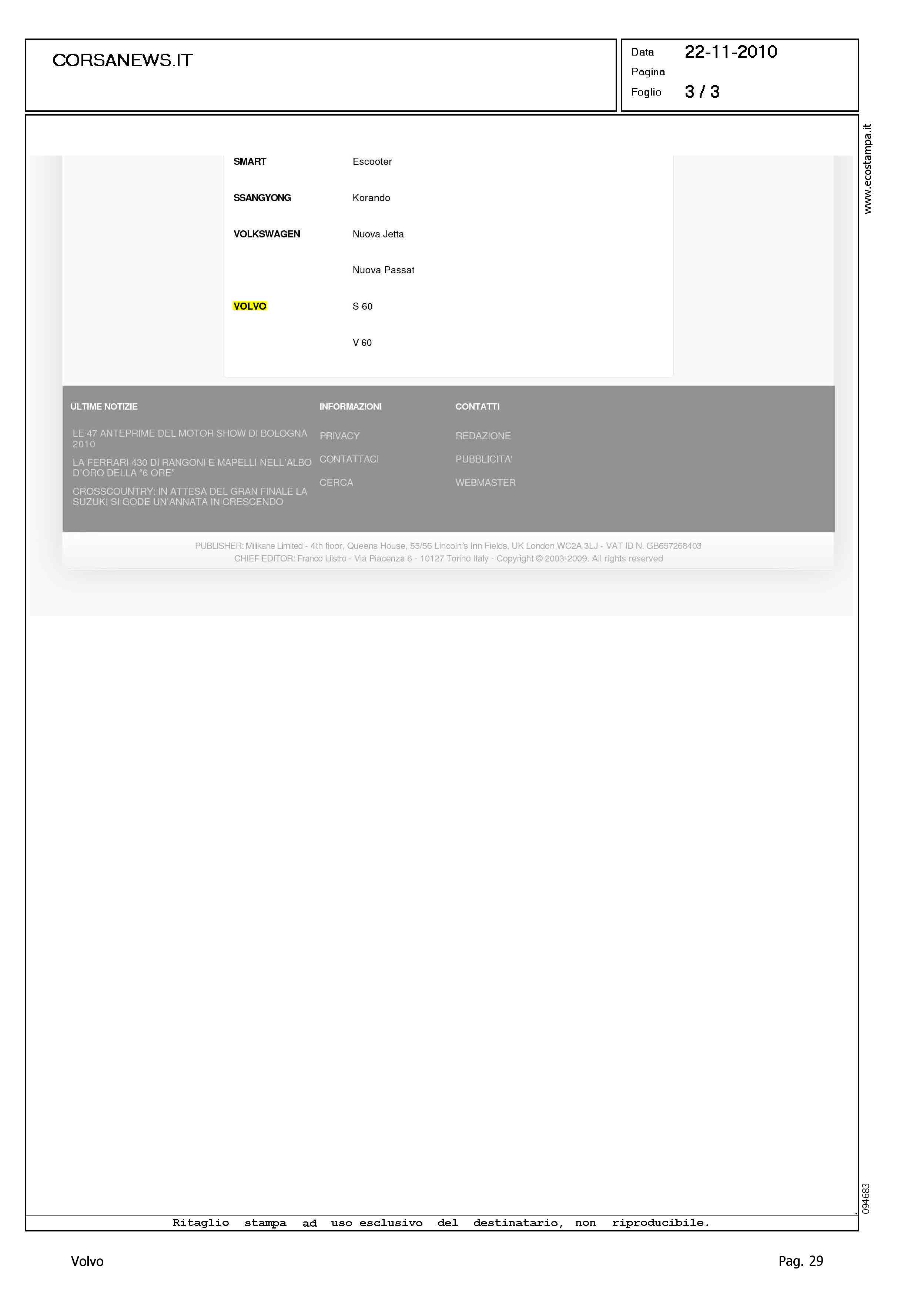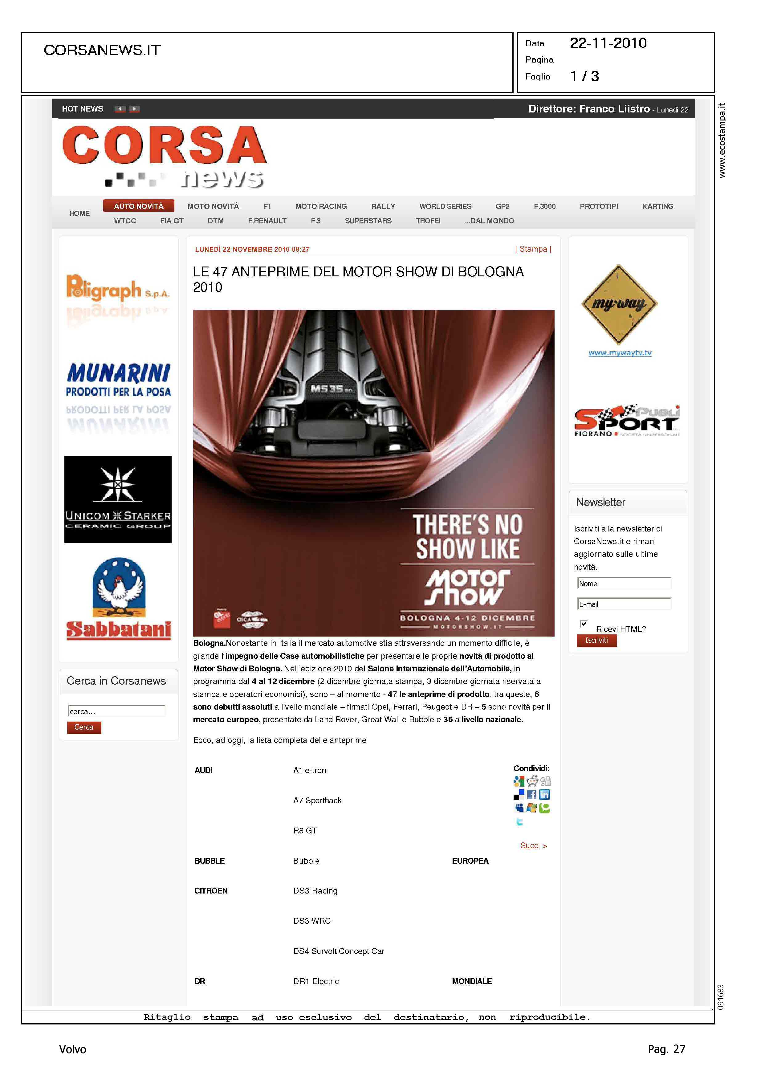Author: Line: Corporate Model: Corporate Subject: - Title: LE 47 ANTEPRIME DEL MOTOR SHOW DI BOLOGNAHighlight: MOTORSHOW BOLOGNA - BRAND PRESENTI