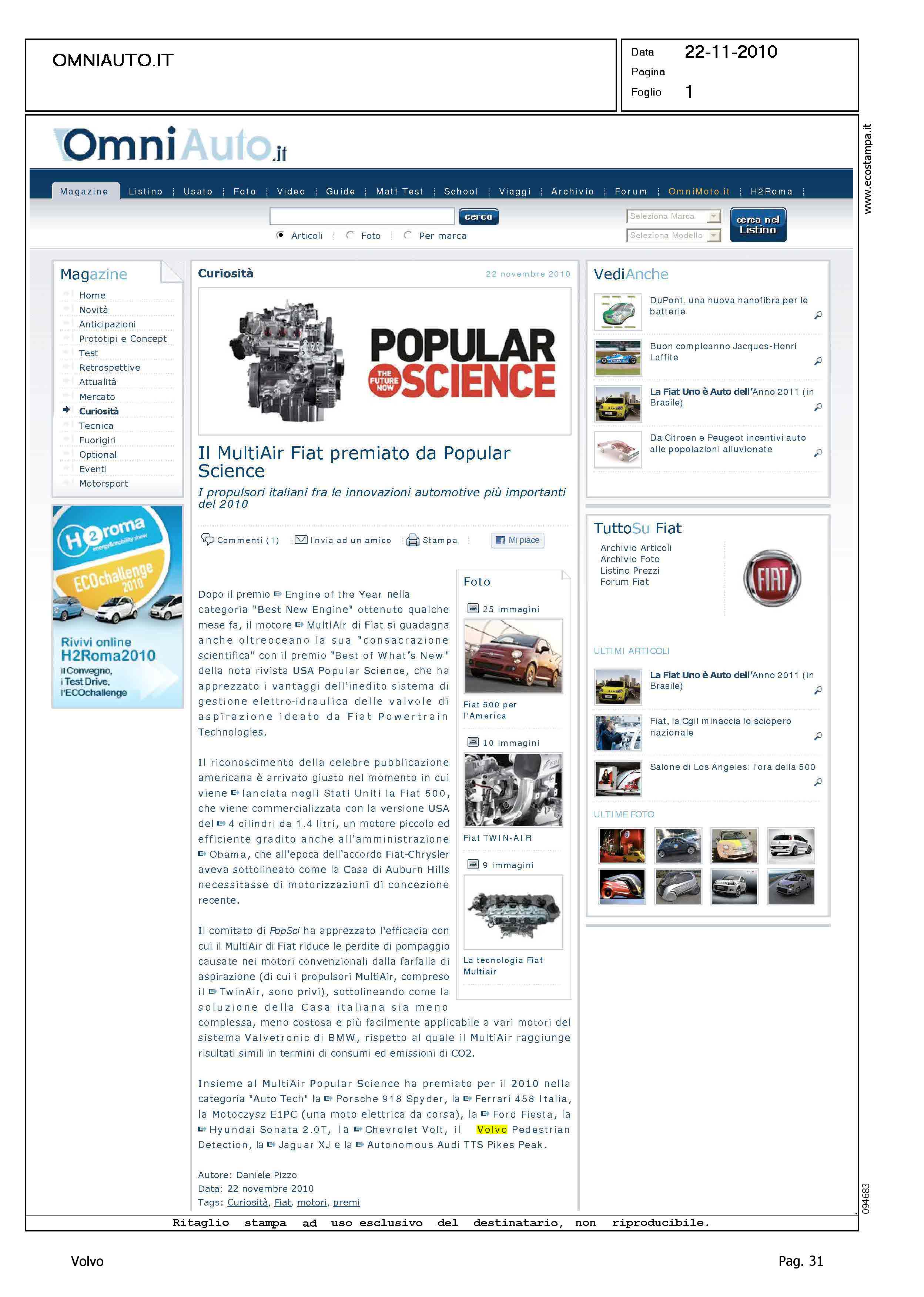 Author: Line: Corporate Model: Corporate Subject: - Title: IL MULTIAIR FIAT PREMIATO DA POPULAR SCIENCEHighlight: POPULAR SCIENCE - PEDESTRIAN DETECTION
