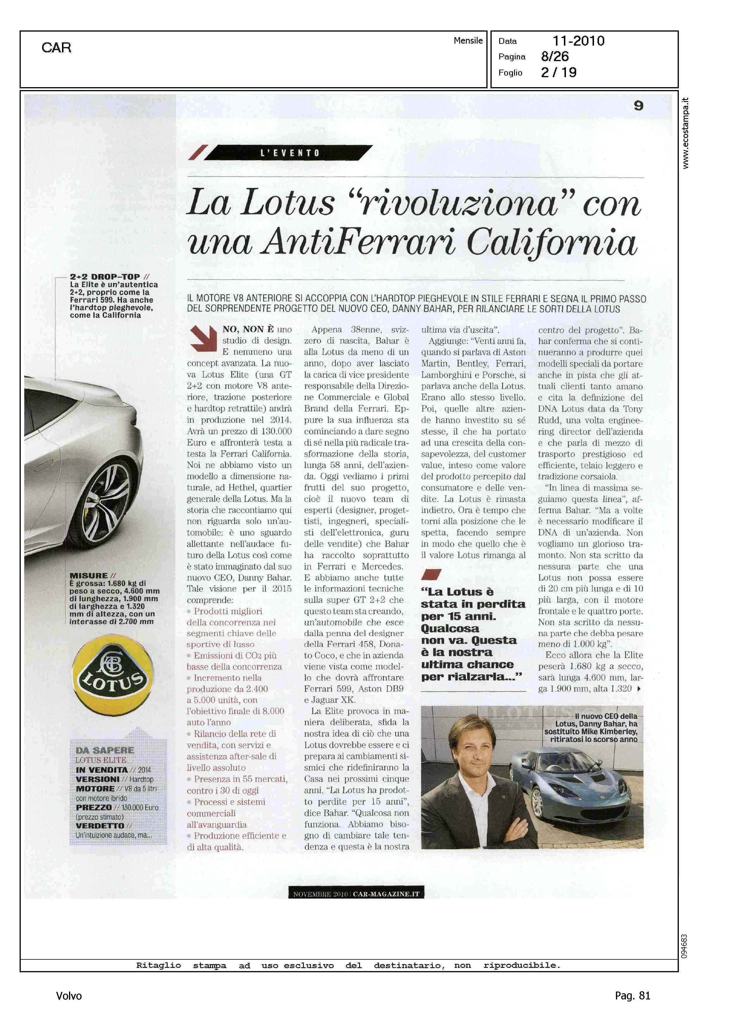 Author: Line: Corporate Model: Corporate Subject: - Title: BUGIE & DANNATE STATISTICHEHighlight: ALLESTIMENTO S60 T5 HEICO