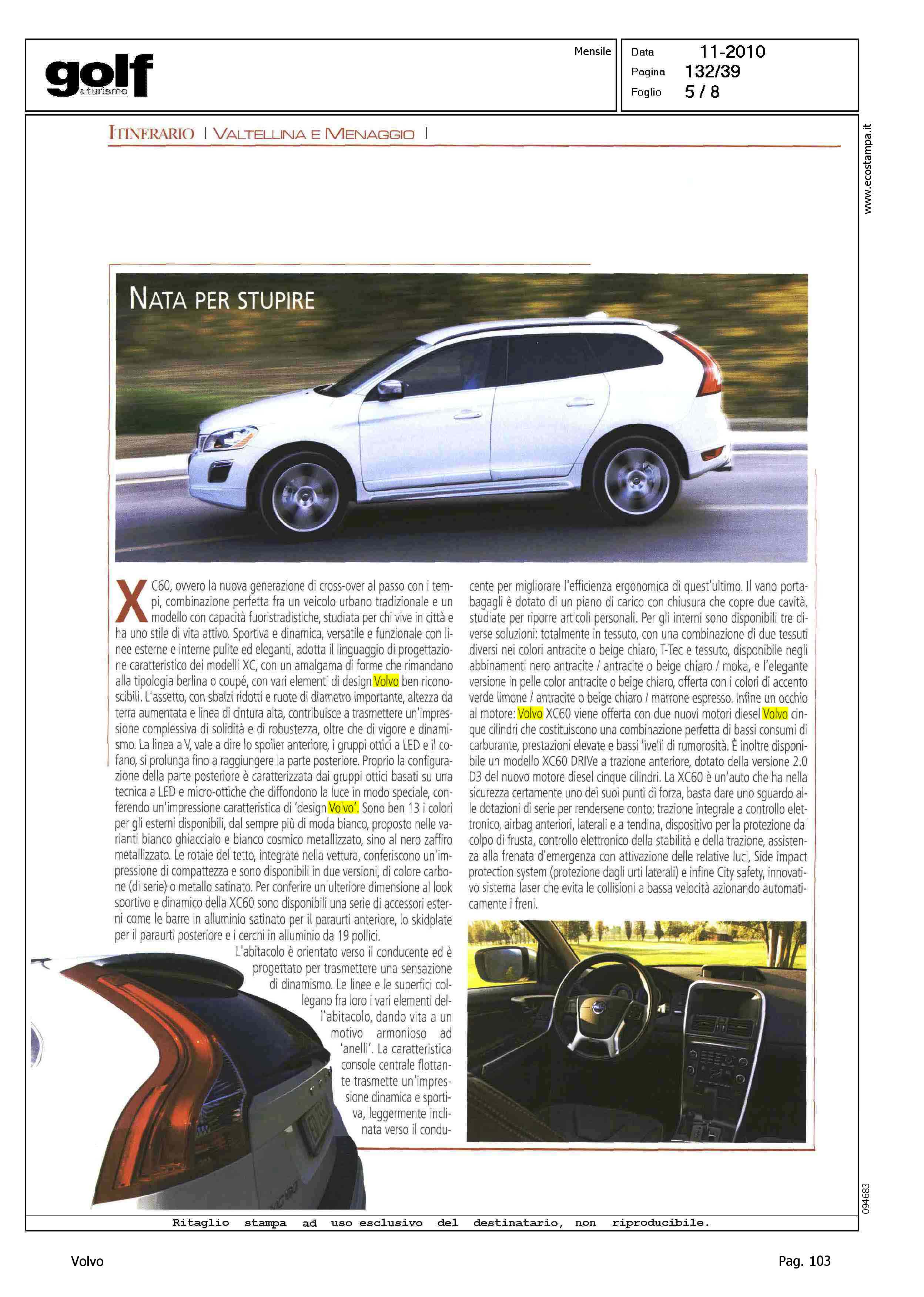 Highlight: ITINERARI - VALTELLINA E MENAGGIO - BOX XC60, PROFILO PRODOTTO - GAMMA XC - DESIGN - ACCESSORI - ABITACOLO - INTERNI - FUNZIONALITA' - BAGAGLIAIO - MOTORI - SICUREZZA - CITY SAFETY
