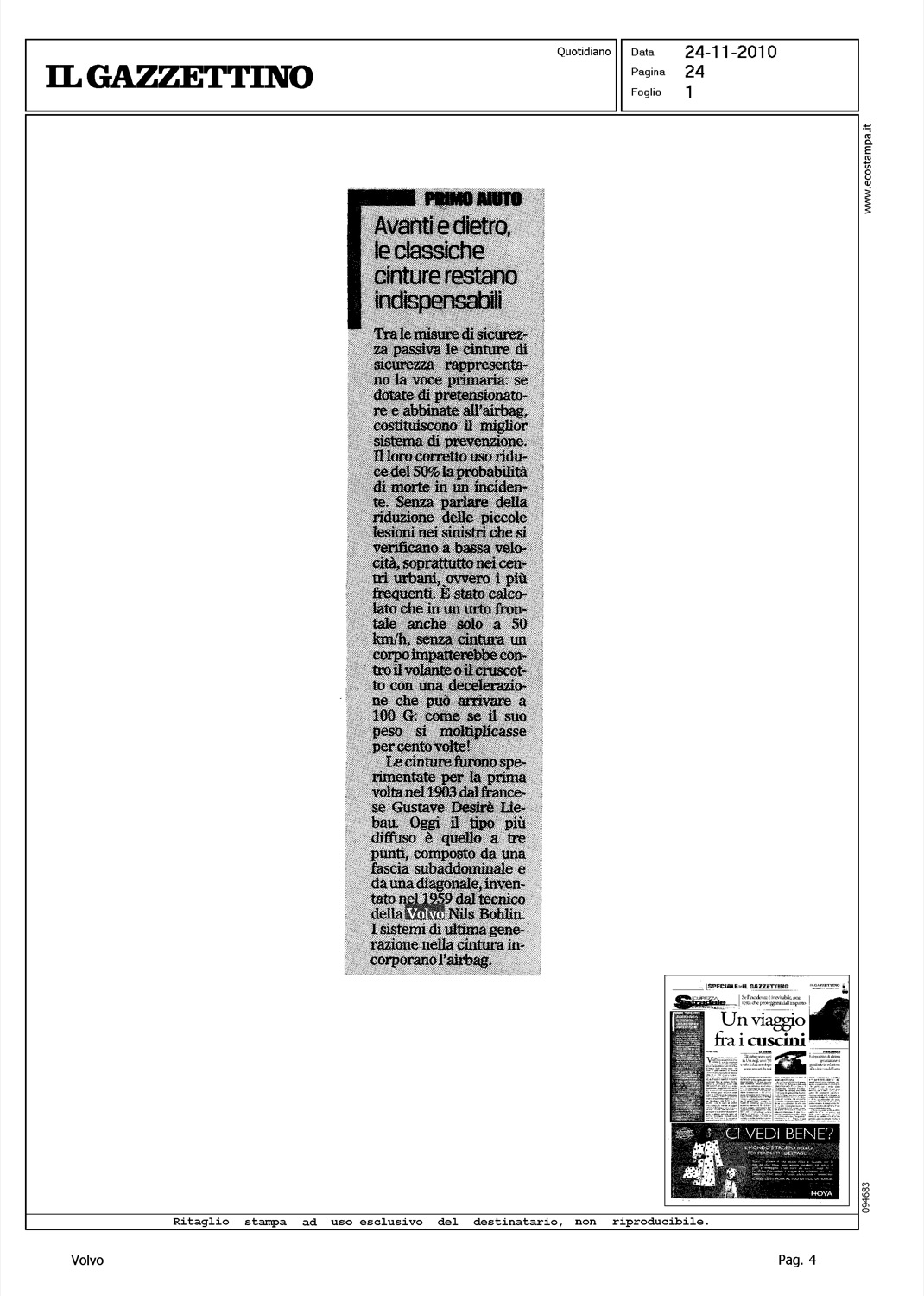 Author: Line: Corporate Model: Corporate Subject: - Title: AVANTI E DIETRO, LE CLASSICHE CINTURE RESTANO INDISPENSABILIHighlight: SICUREZZA - VALORE VOLVO