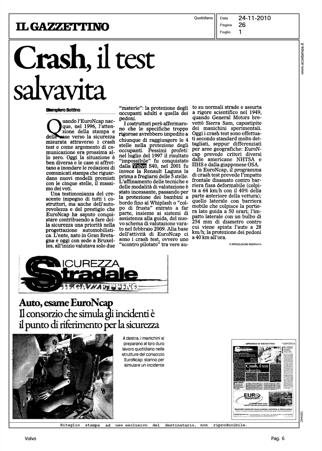 Author: BOTTINO, GIAMPIEROLine: Corporate Model: Corporate Subject: - Title: CRASH, IL TEST SALVAVITAHighlight: SICUREZZA - VALORE VOLVO - VOLVO S40