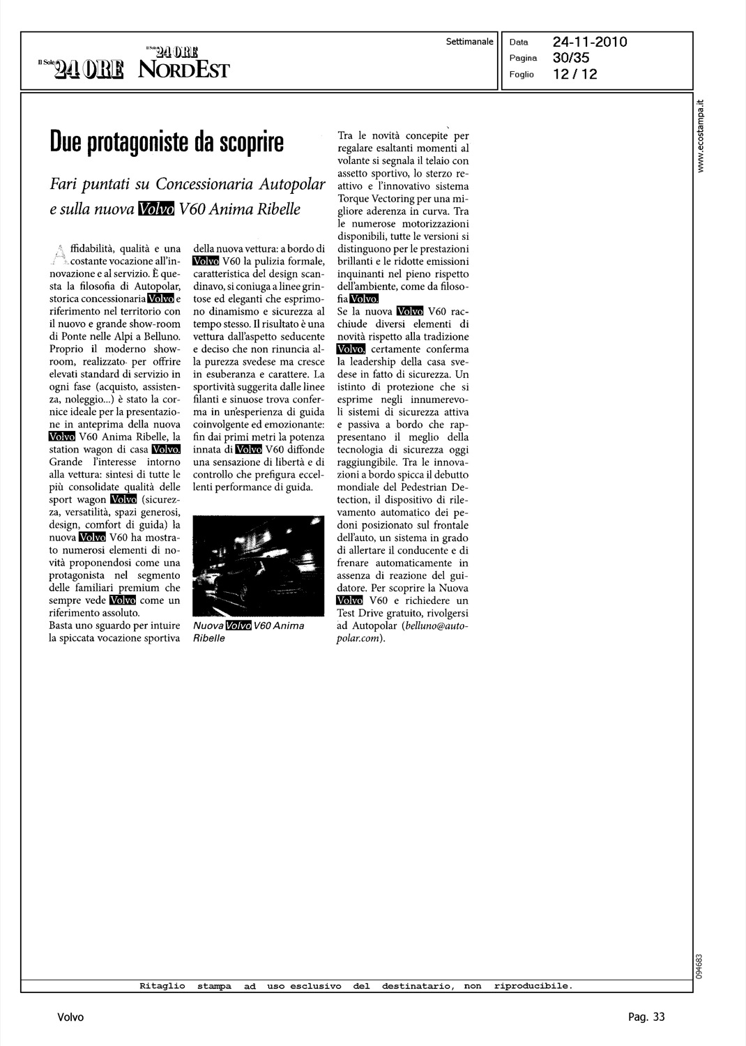Highlight: RETE DI VENDITA - CONCESSIONARIA AUTOPOLAR - PRESENTAZIONE PRODOTTO, VOLVO V60 - VALORE VOLVO - DESIGN - ACCESSORI SICUREZZA DINAMICA DI MARCIA - SICUREZZA - PEDESTRIAN DETECTION