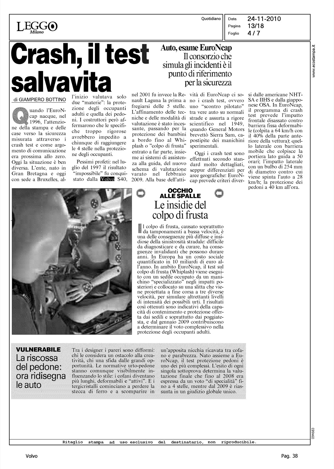Author: URSICINO, GIORGIOLine: Corporate Model: Corporate Subject: - Title: PROTEZIONE A ZERO IMPATTOHighlight: SICUREZZA - VALORE VOLVO
