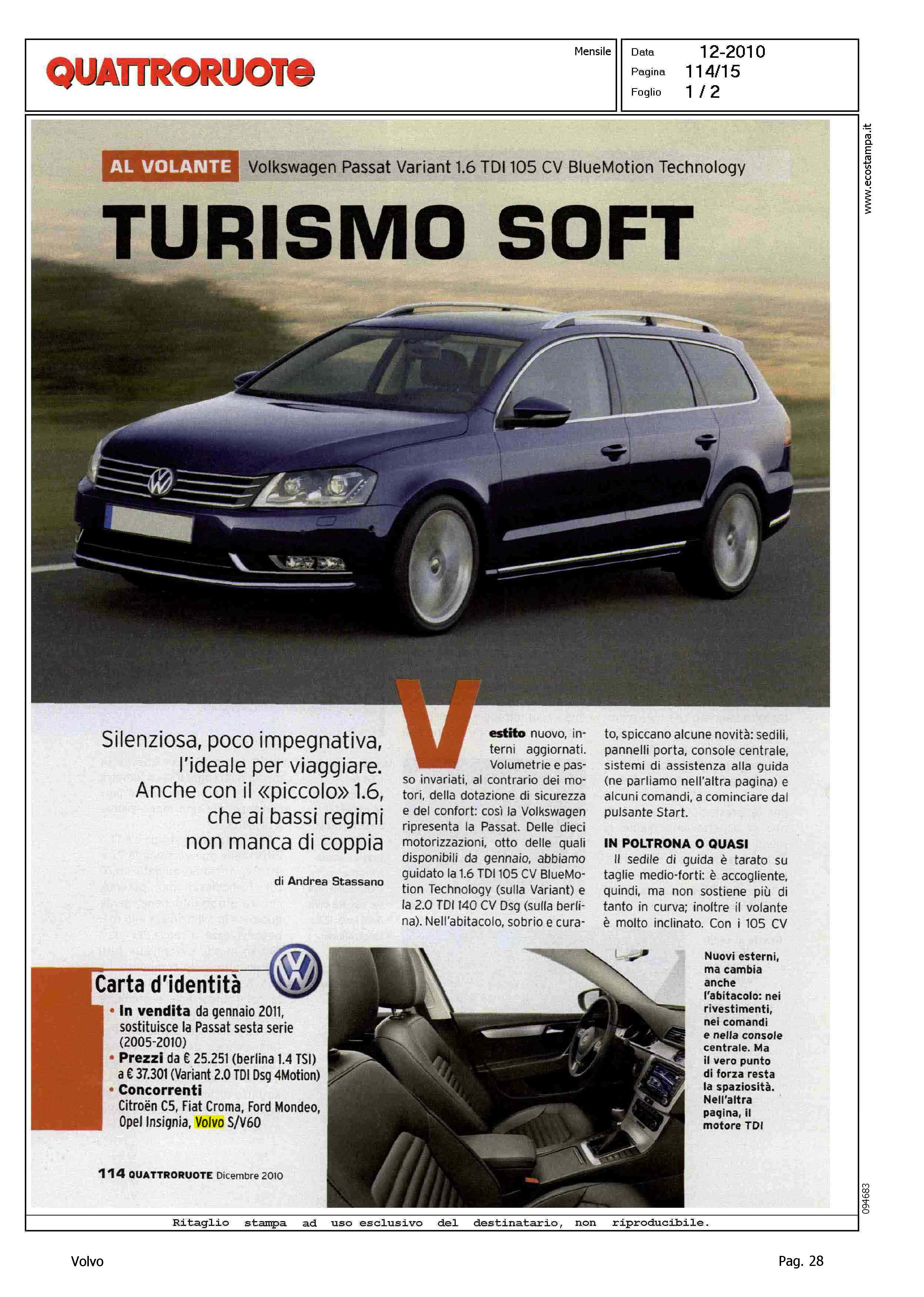 Author: STASSANO, ANDREALine: Corporate Model: Corporate Subject: - Title: TURISMO SOFTHighlight: VOLVO S60, VOLVO V60 - COMPETITOR VS PASSAT
