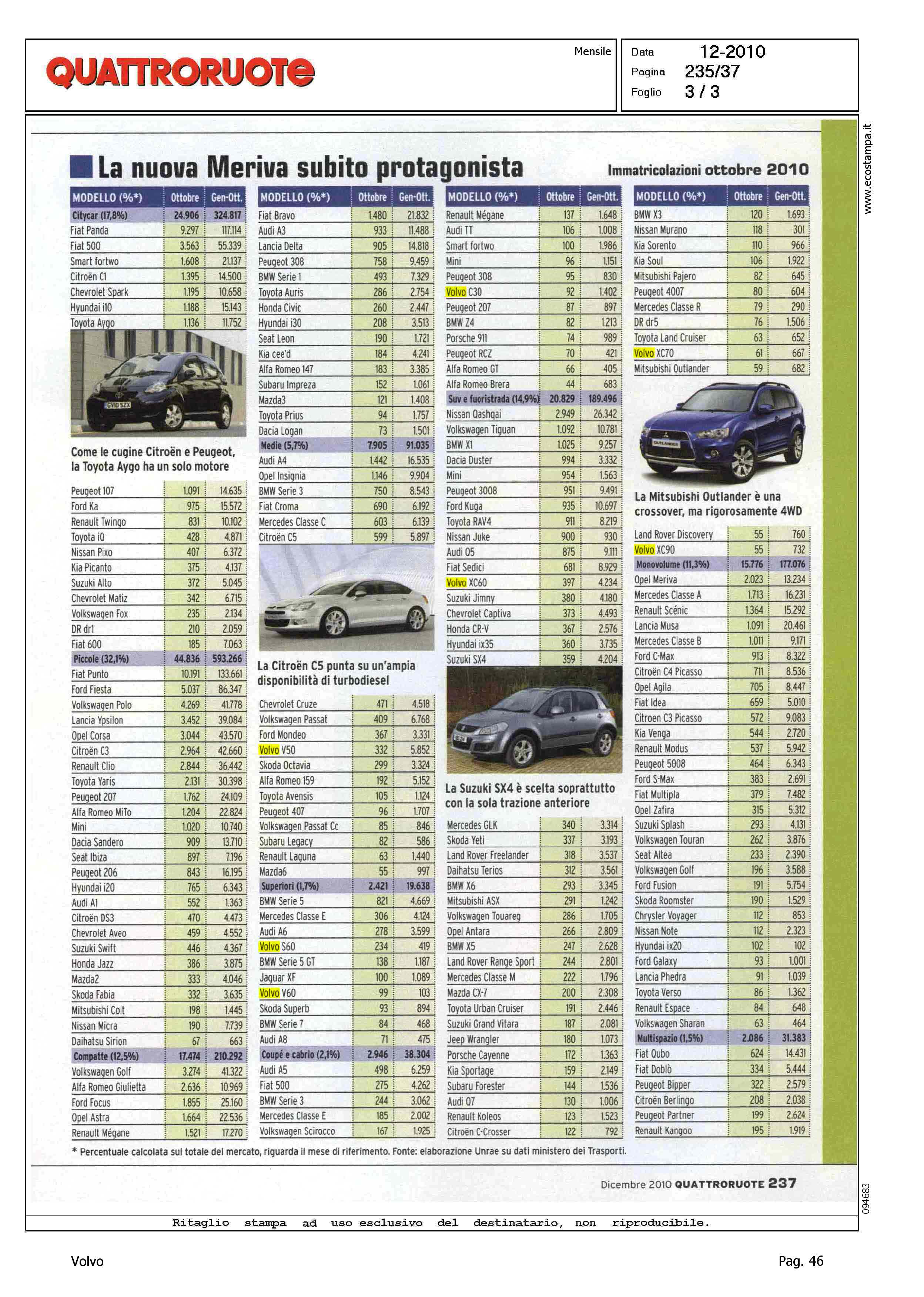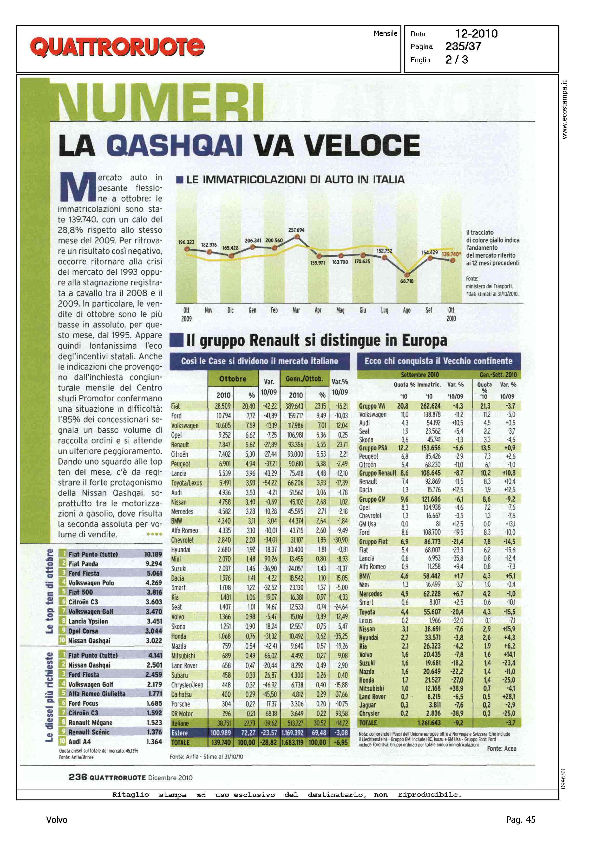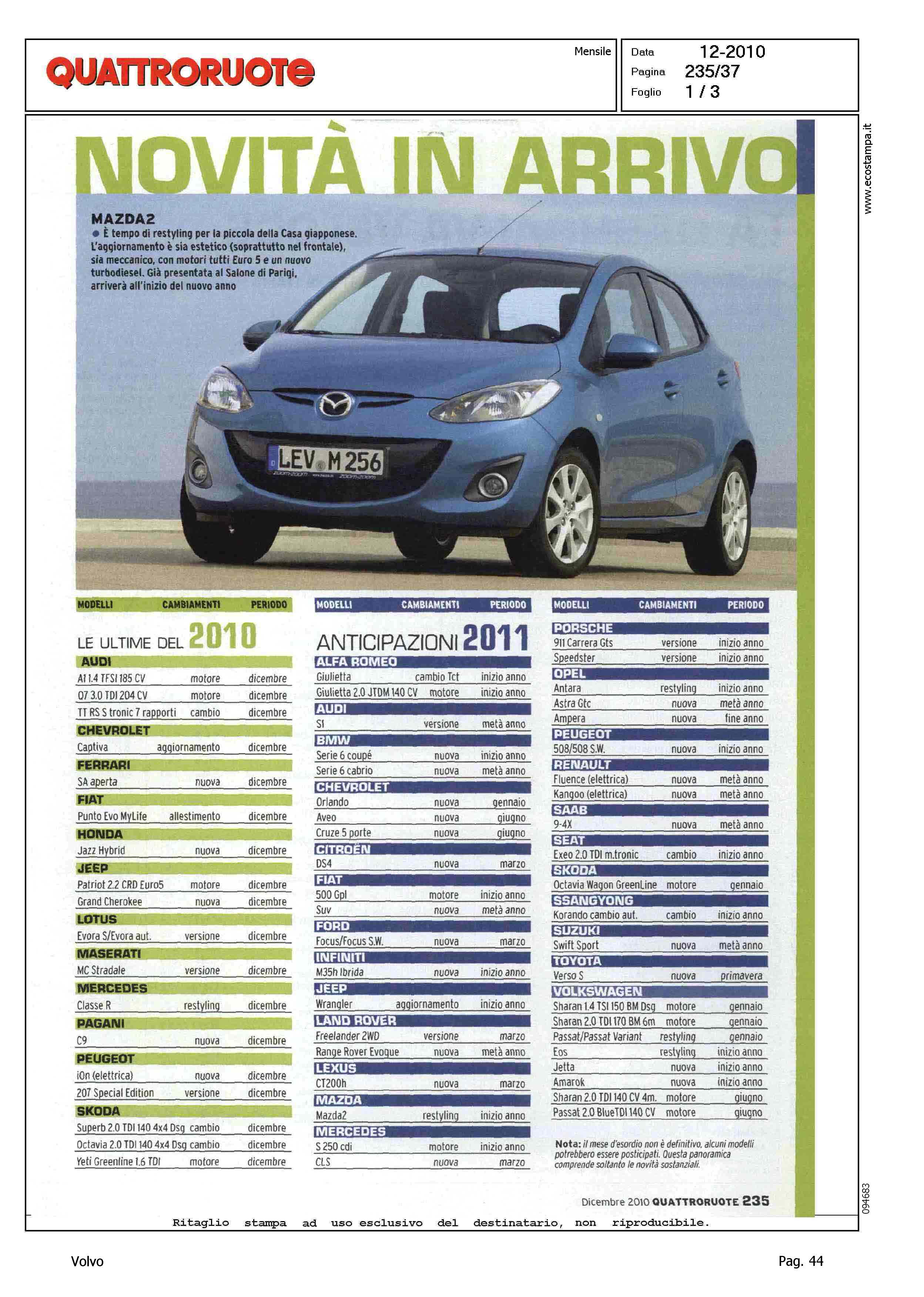 Author: Line: Corporate Model: Corporate Subject: - Title: NOVITA' IN ARRIVO - NUMERIHighlight: MERCATO ITALIA - TABELLE - POSIZIONE VOLVO