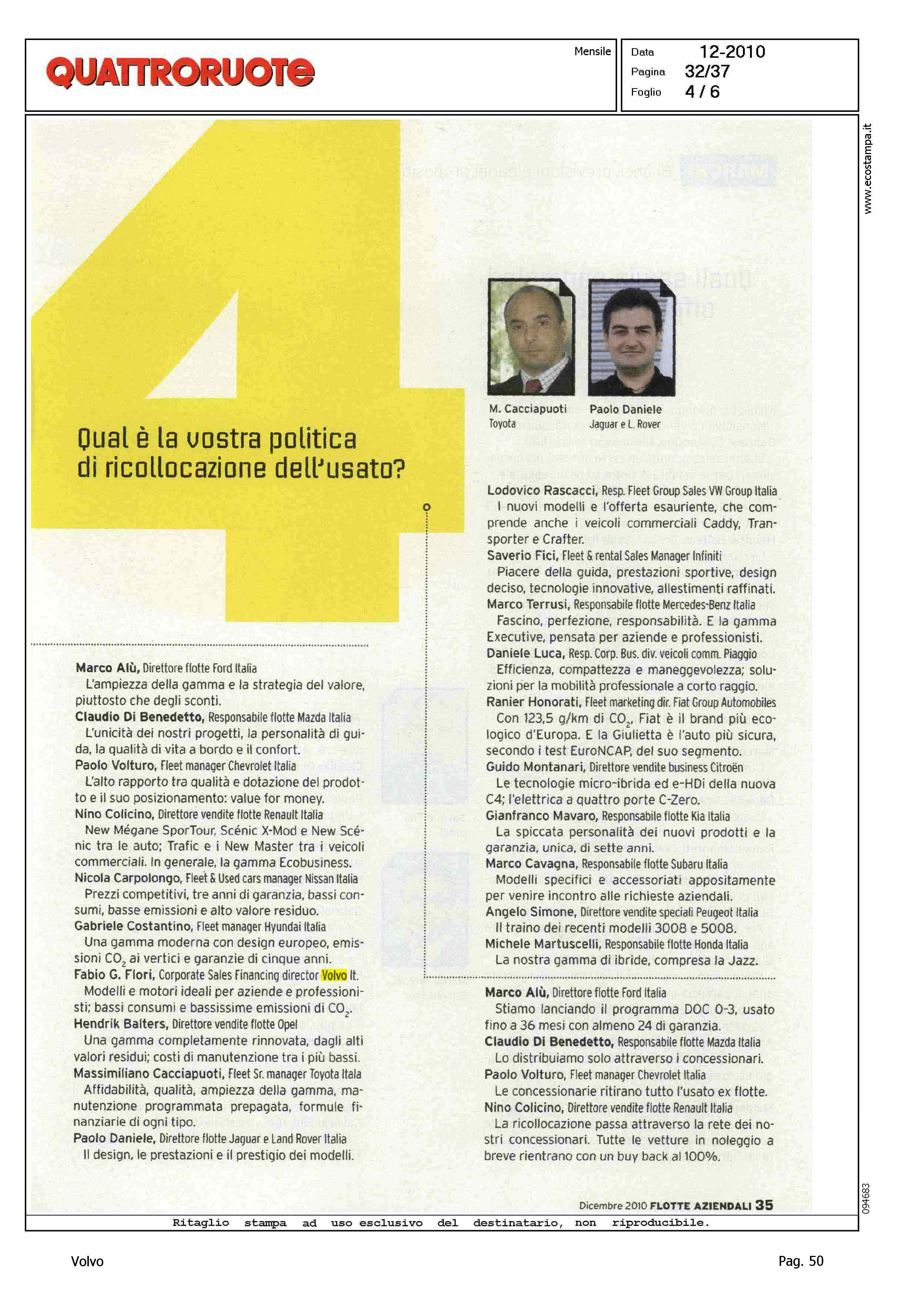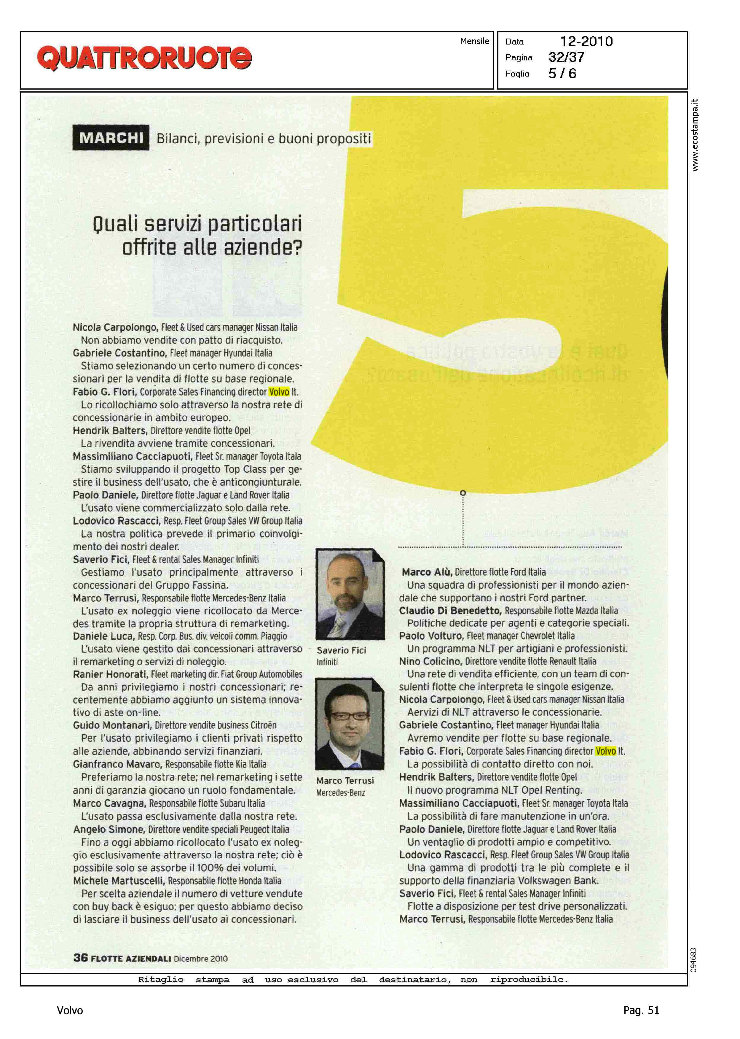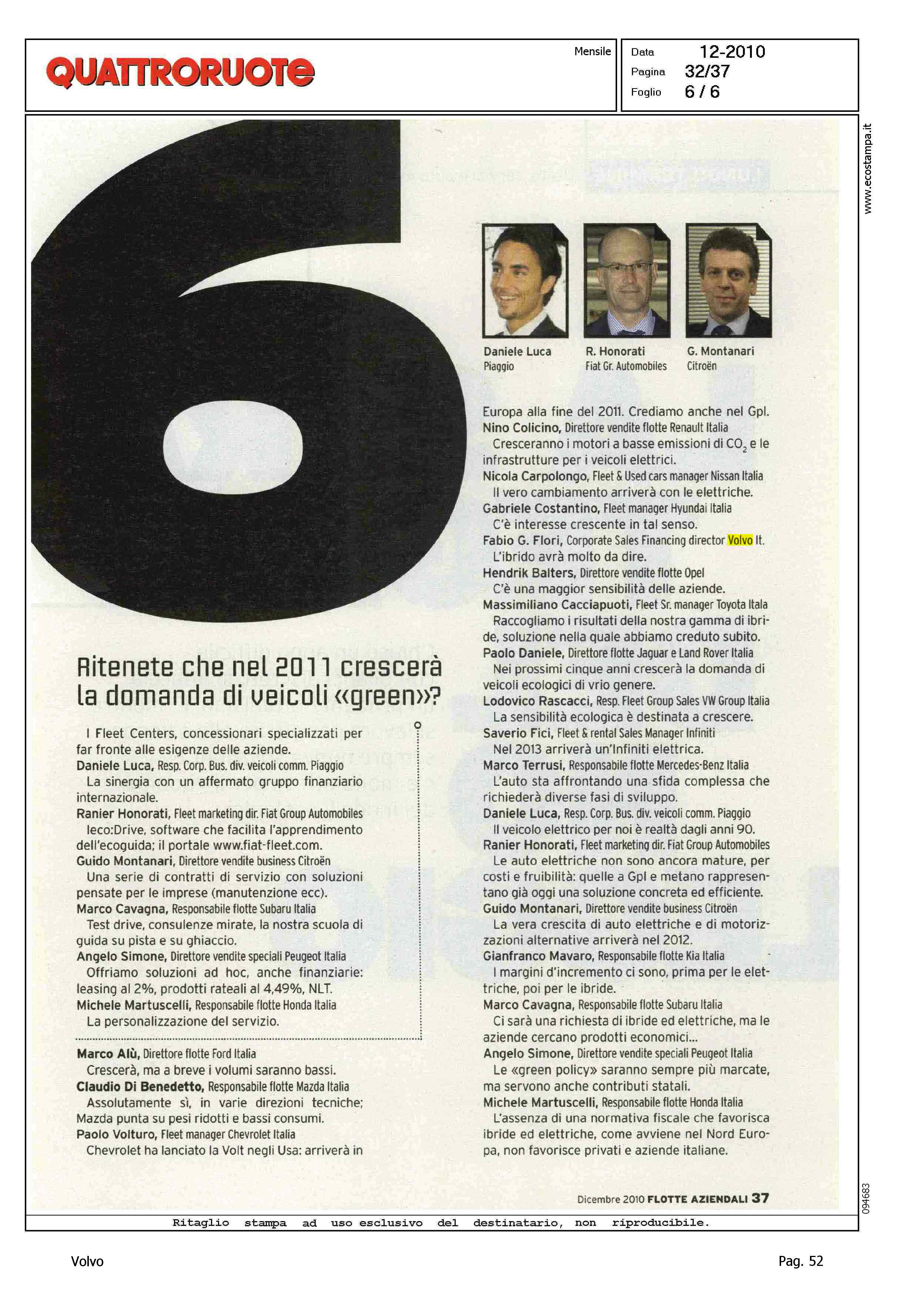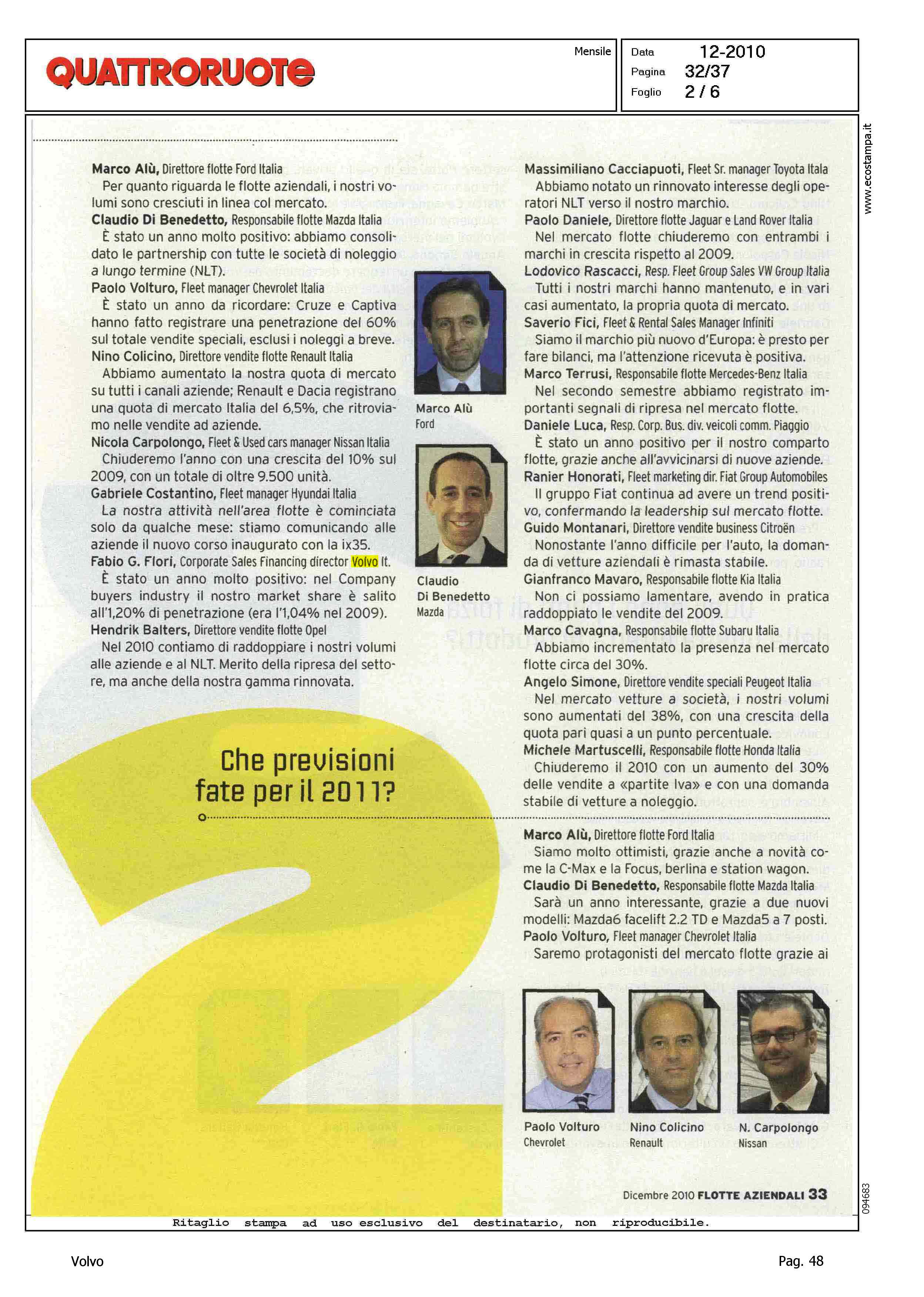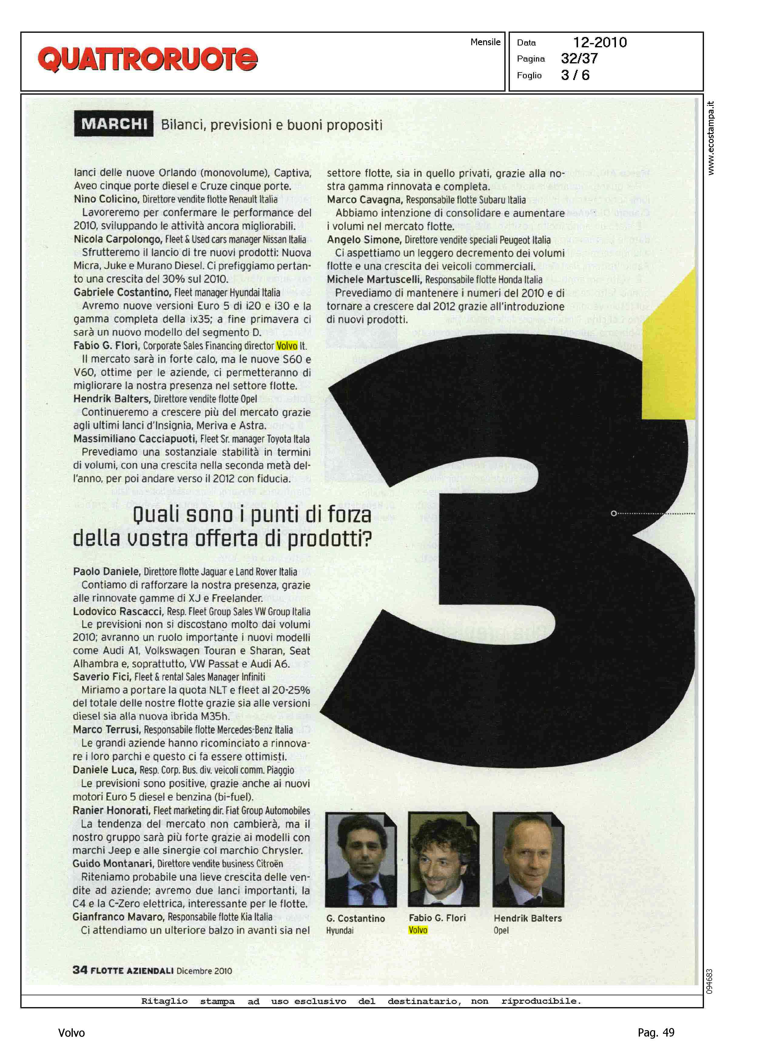 Author: Line: Corporate Model: Corporate Subject: - Title: LA STRATEGIA DELLE CASEHighlight: MERCATO ITALIA - FLOTTE AZIENDALI - INCHIESTA - POSIZIONE VOLVO - FLORI, INTERVIEW