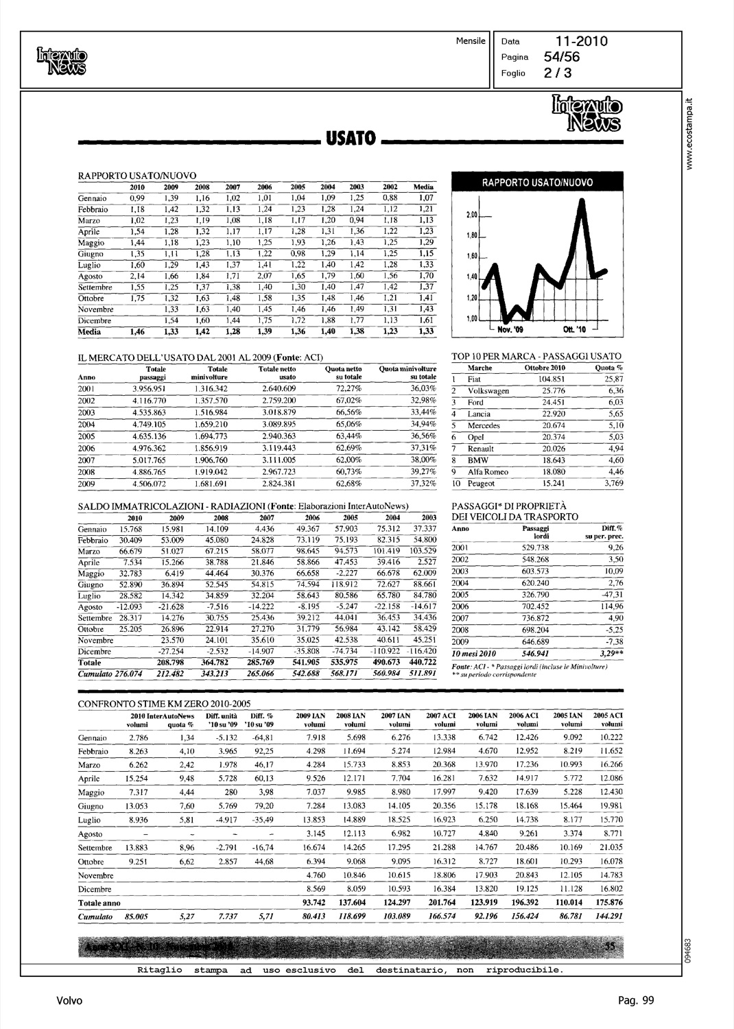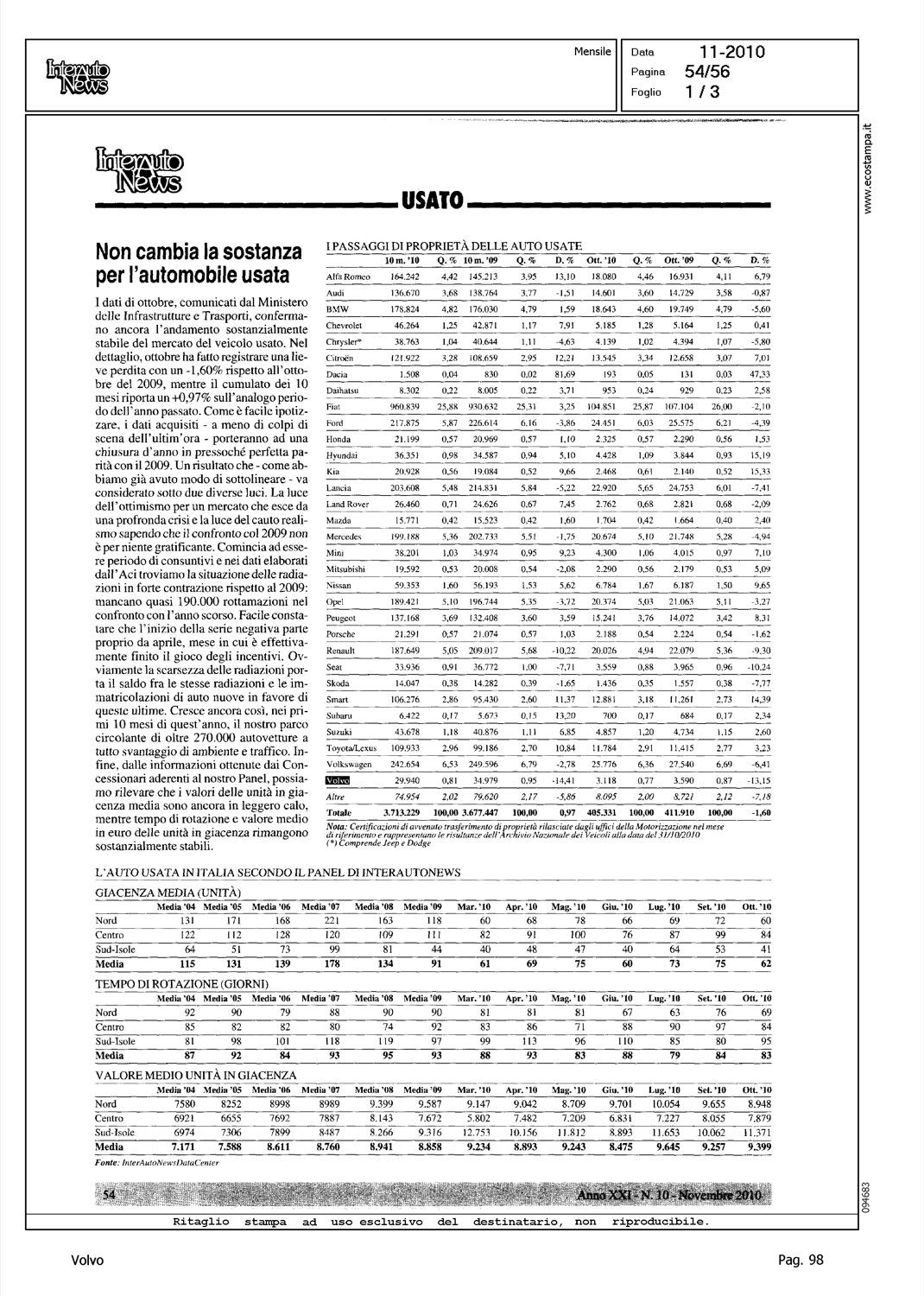 Author: Line: Corporate Model: Corporate Subject: - Title: USATO - NON CAMBIA LA SOSTANZA PER L'AUTOMOBILE USATAHighlight: MERCATO USATO - TABELLE - POSIZIONE VOLVO