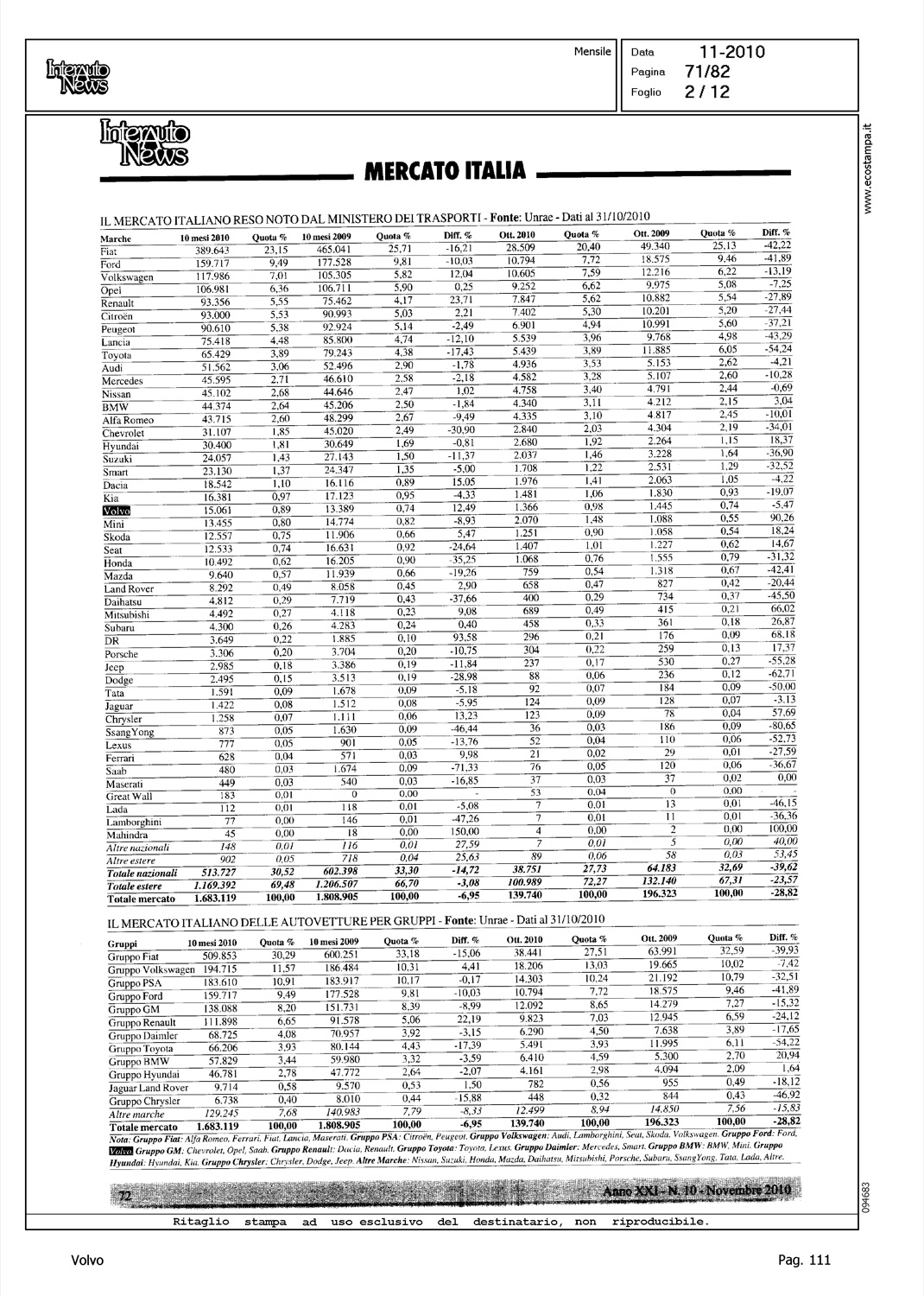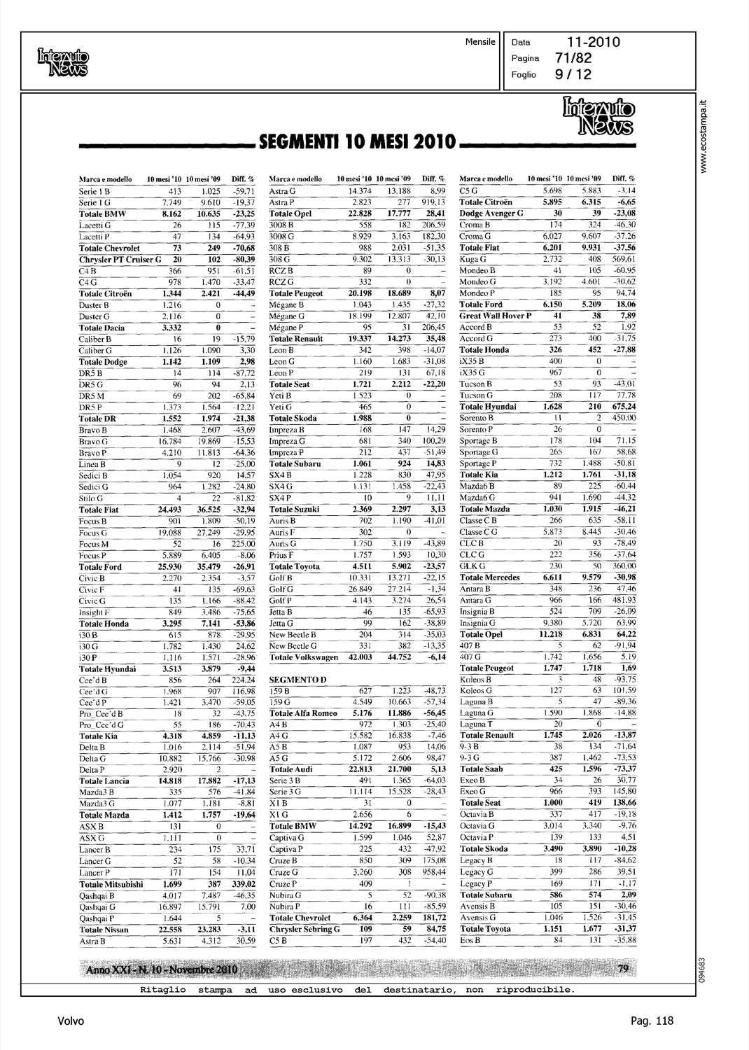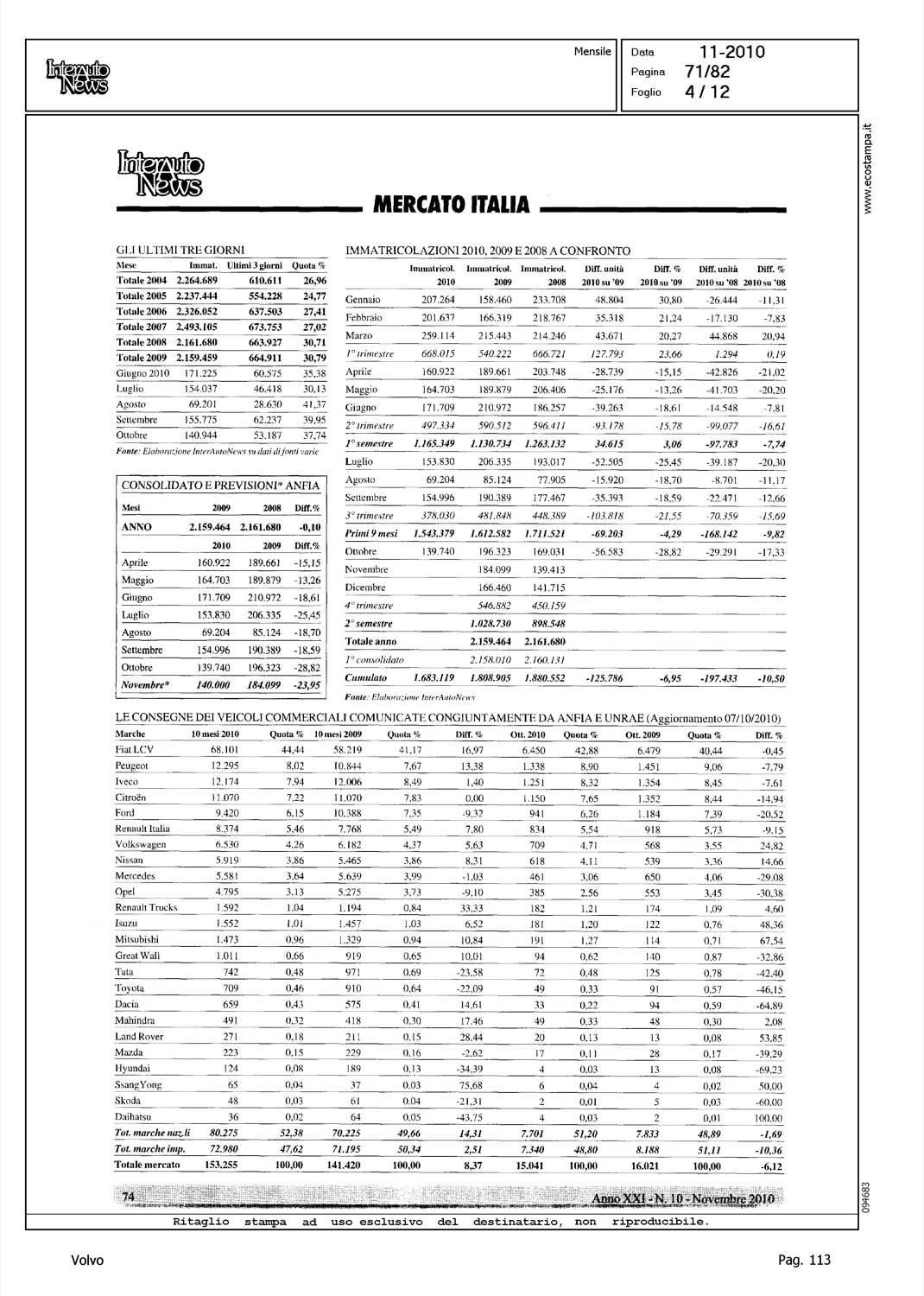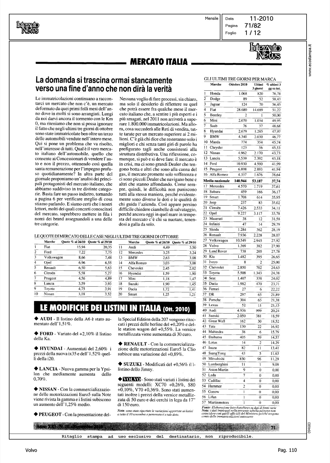 Author: Line: Corporate Model: Corporate Subject: - Title: LA DOMANDA SI TRASCINA ORMAI STANCAMENTE VERSO UNA FINE D'ANNO CHE NON DIRA' LA VERITA'Highlight: MERCATO ITALIA - TABELLE - POSIZIONE VOLVO