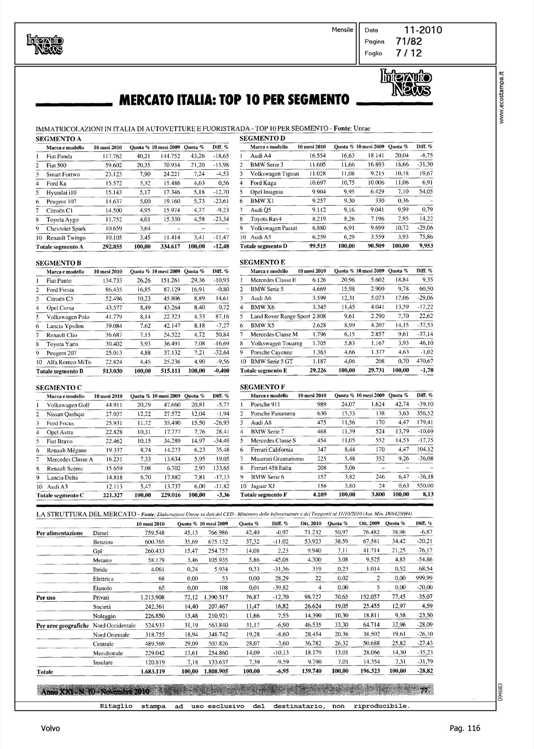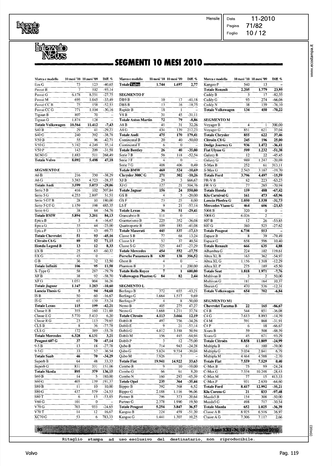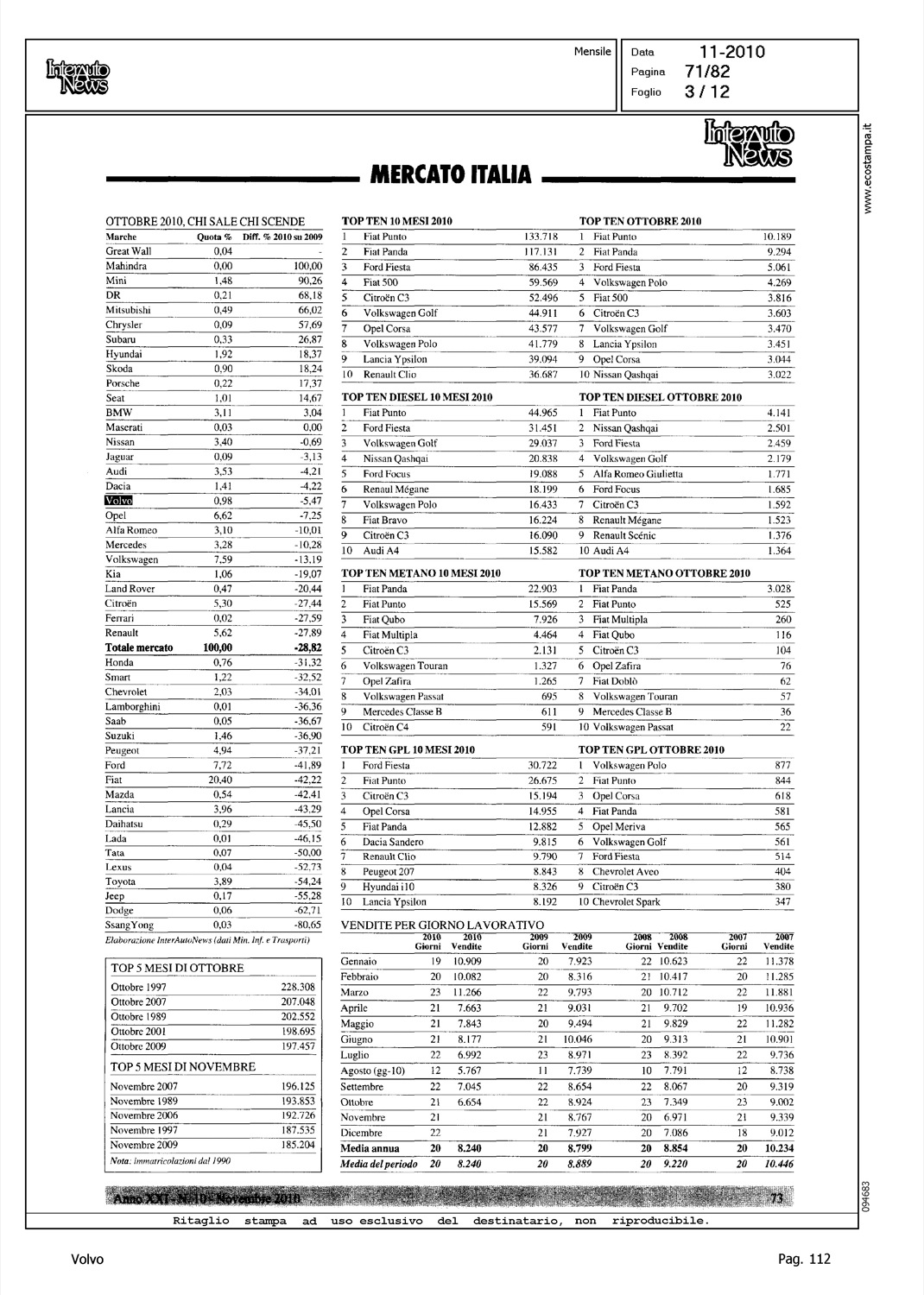 Author: Line: Corporate Model: Corporate Subject: - Title: LA DOMANDA SI TRASCINA ORMAI STANCAMENTE VERSO UNA FINE D'ANNO CHE NON DIRA' LA VERITA'Highlight: MERCATO ITALIA - TABELLE - POSIZIONE VOLVO