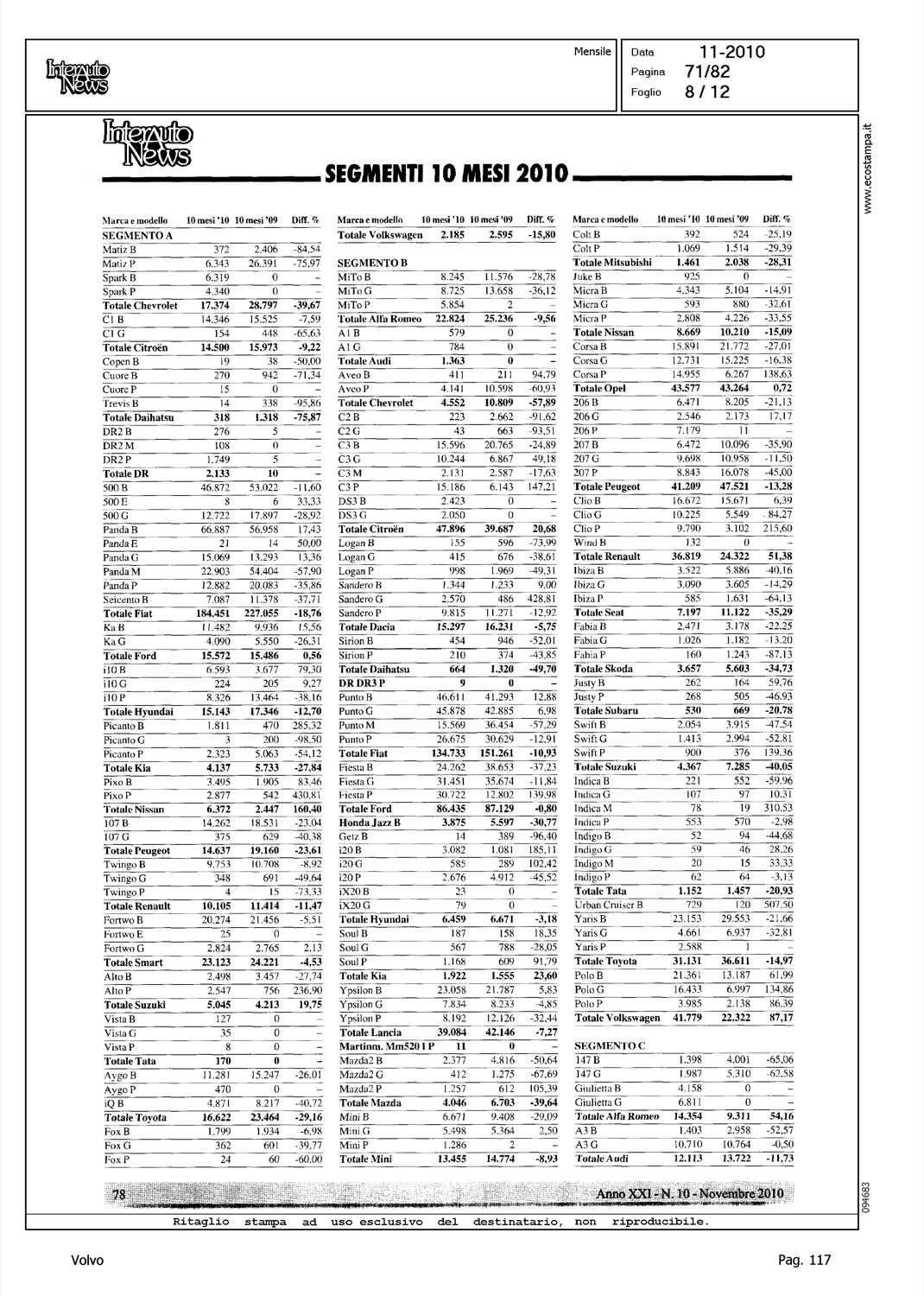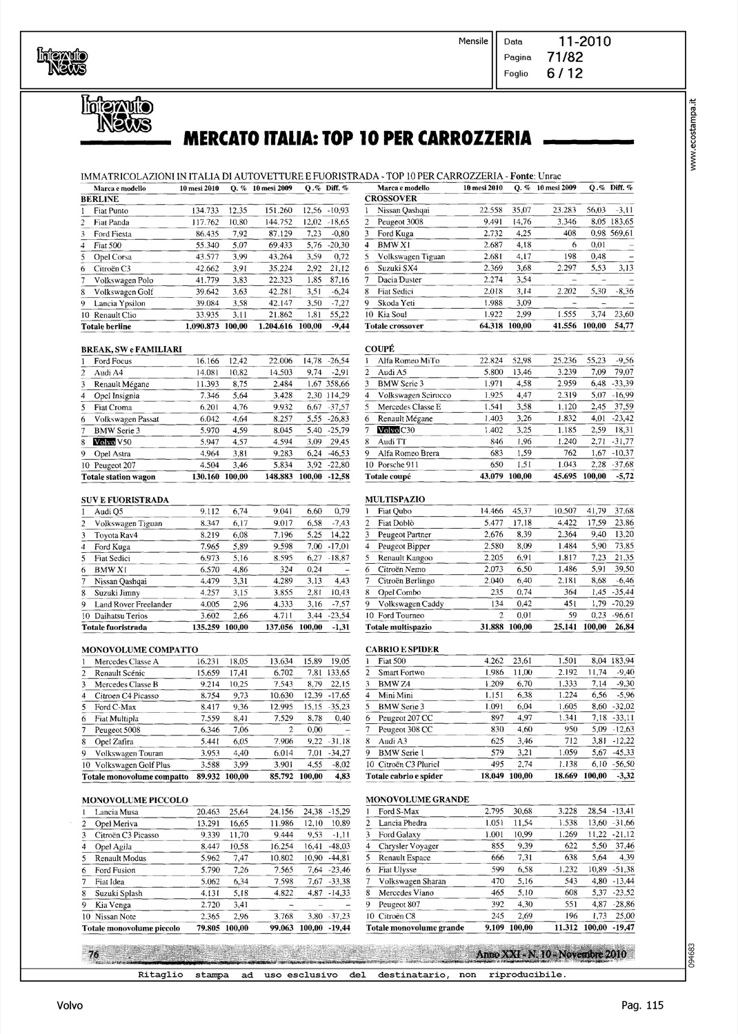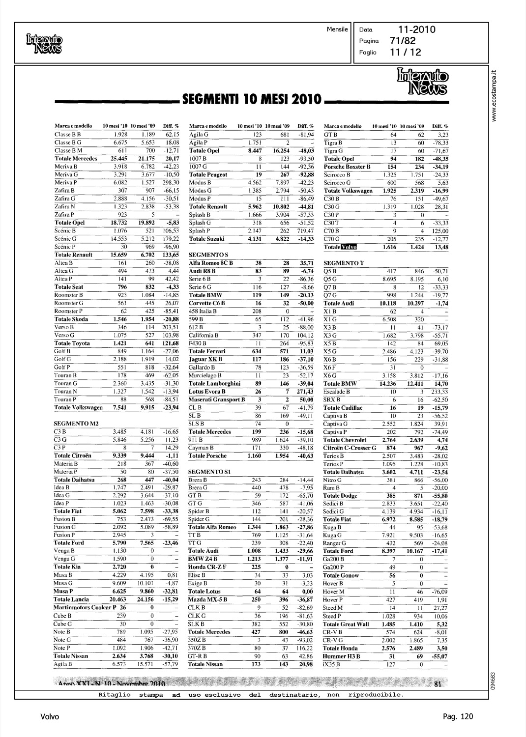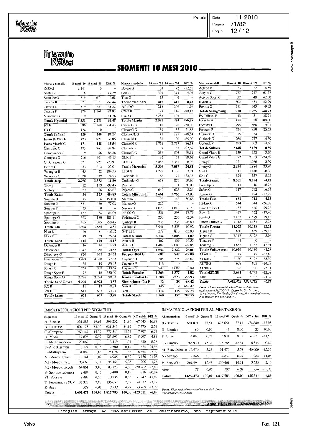 Author: Line: Corporate Model: Corporate Subject: - Title: LA DOMANDA SI TRASCINA ORMAI STANCAMENTE VERSO UNA FINE D'ANNO CHE NON DIRA' LA VERITA'Highlight: MERCATO ITALIA - TABELLE - POSIZIONE VOLVO