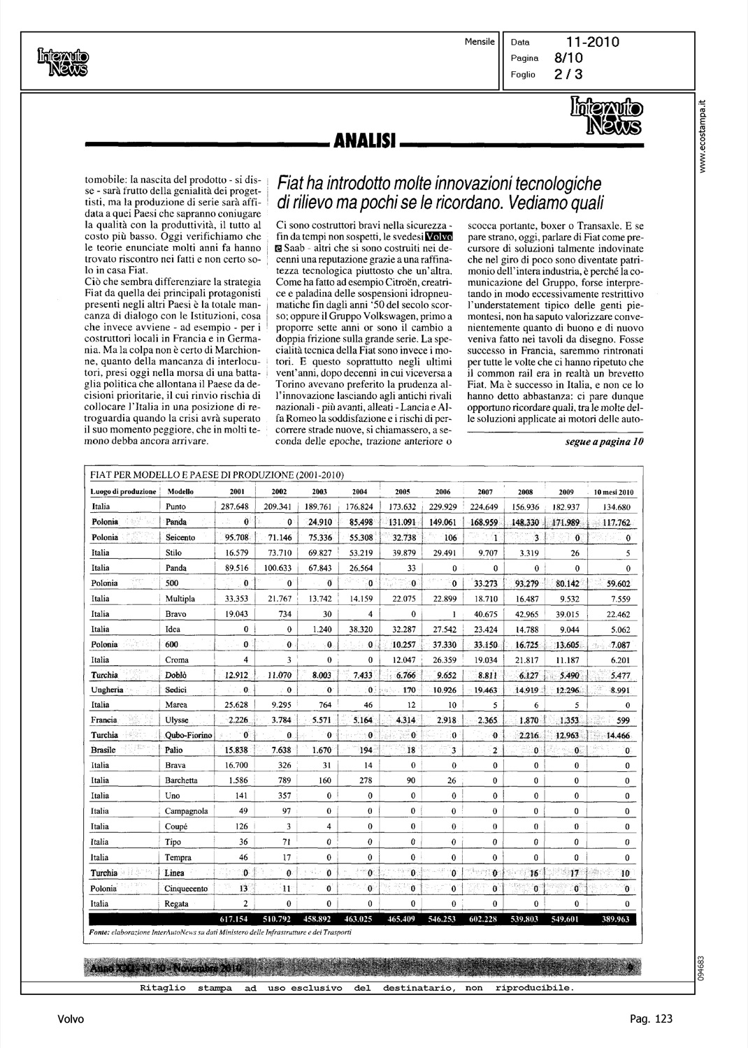 Author: Line: Corporate Model: Corporate Subject: - Title: FIAT HA INTRODOTTO MOLTE INNOVAZIONI TECNOLOGICHE DI RILIEVO MA POCHI SE LE RICORDANO. VEDIAMO QUALIHighlight: SICUREZZA - VALORE VOLVO