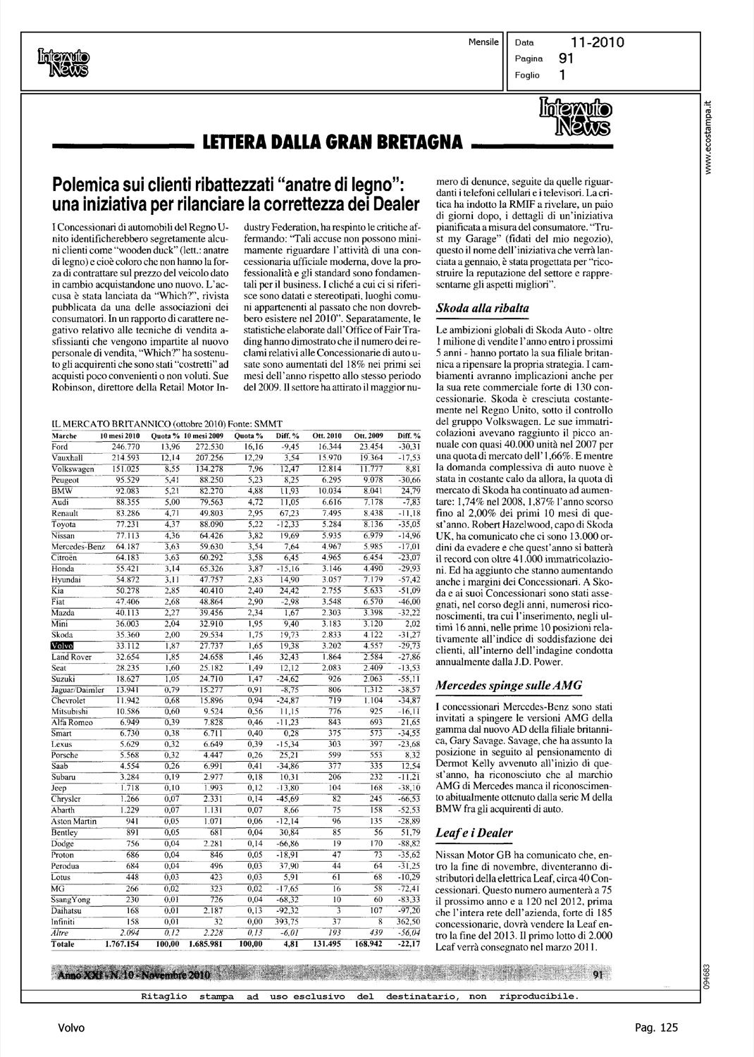Highlight: MERCATO GRAN BRETAGNA - TABELLE - POSIZIONE VOLVO