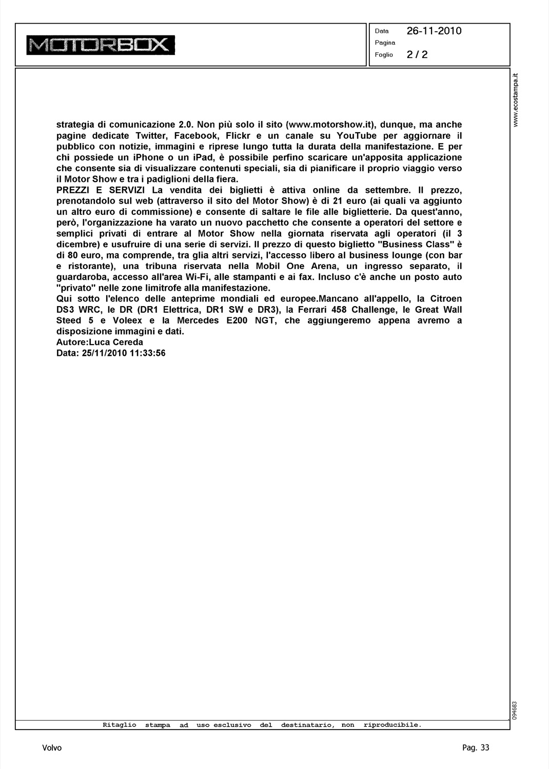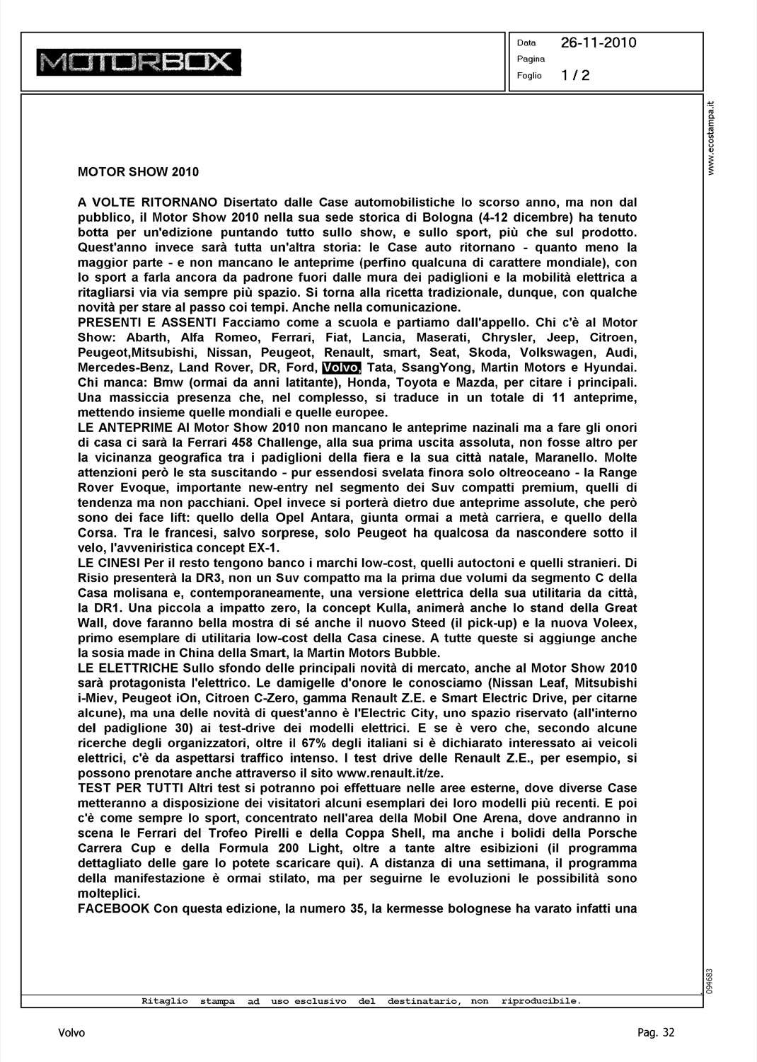 Author: Line: Corporate Model: Corporate Subject: - Title: MOTOR SHOW 2010Highlight: MOTORSHOW BOLOGNA - BRAND PRESENTI