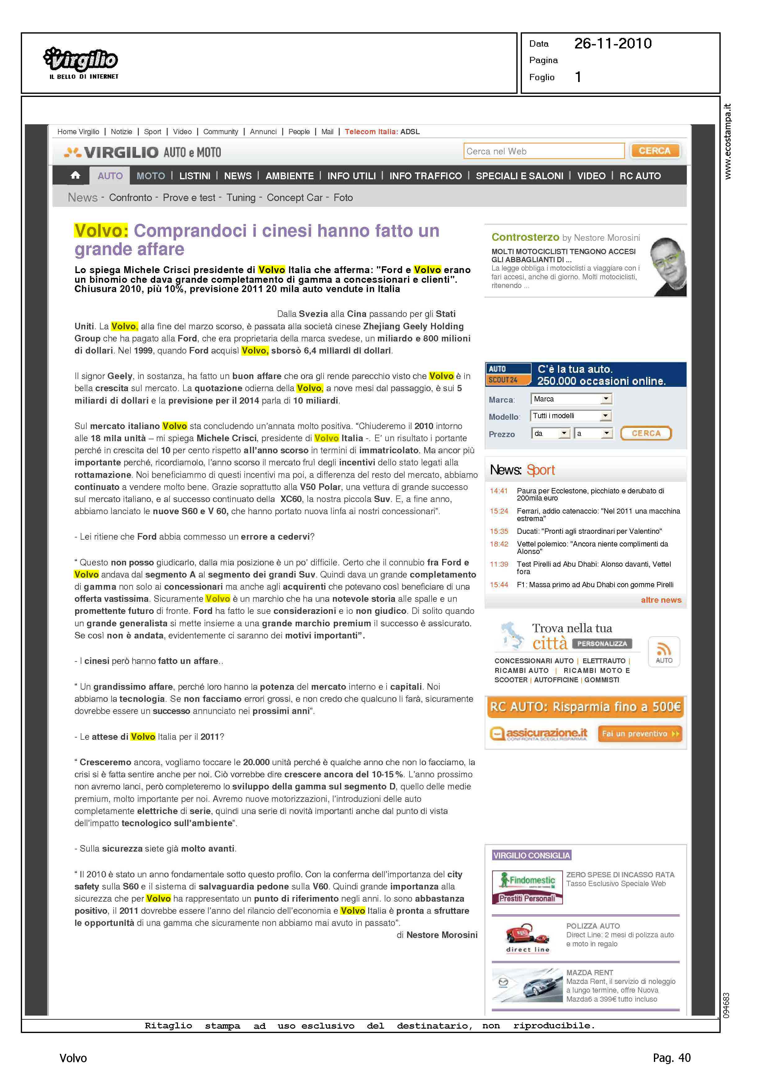 Author: Line: Corporate Model: Corporate Subject: - Title: VOLVO: COMPRANDOCI I CINESI HANNO FATTO UN GRANDE AFFAREHighlight: VOLVO - GEELY