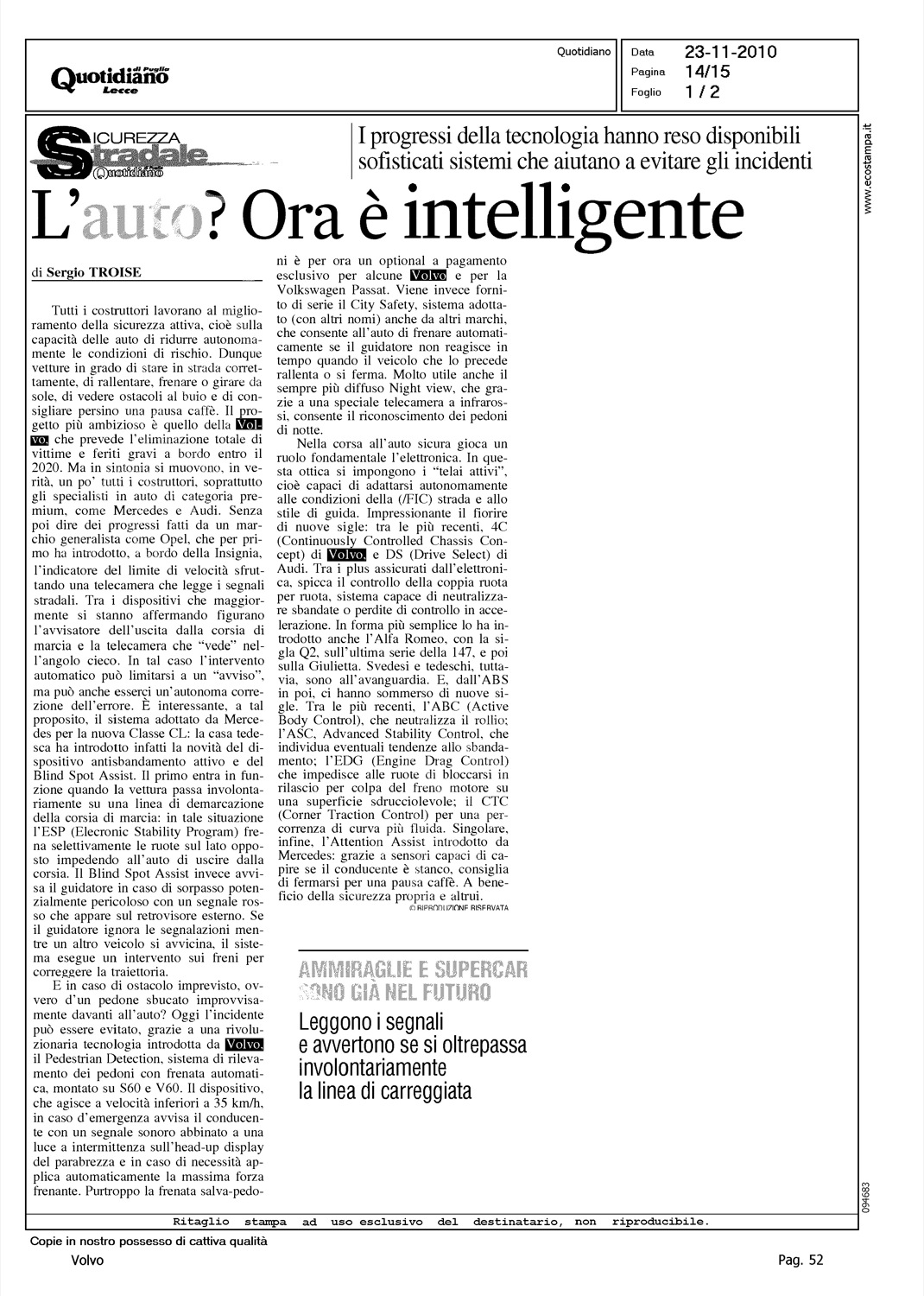 Author: TROISE, SERGIOLine: Corporate Model: Corporate Subject: - Title: L'AUTO? ORA E' INTELLIGENTEHighlight: SICUREZZA - PEDESTRIAN DETECTION - PROGETTO 2020