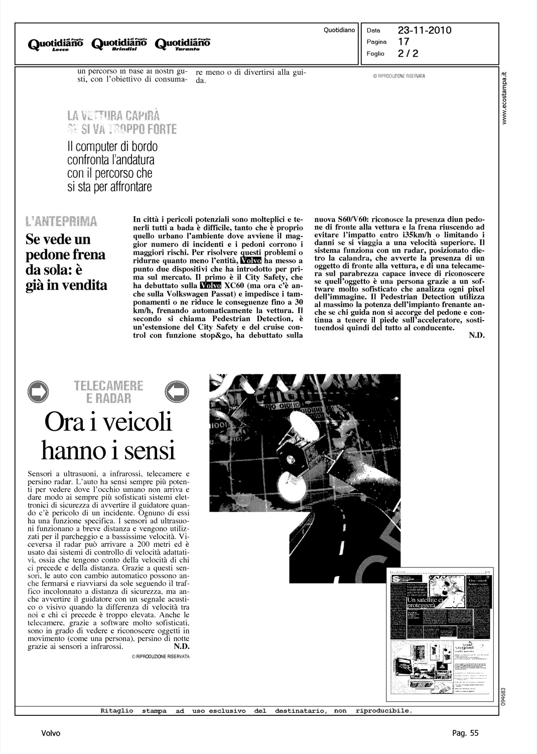 Author: DESIDERIO, NICOLA Line: Corporate Model: Corporate Subject: - Title: L'ANTEPRIMA - SE VEDE UN PEDONE FRENA DA SOLA: E' GIA' IN VENDITA Highlight: SICUREZZA - PEDESTRIAN DETECTION - CITY SAFETY