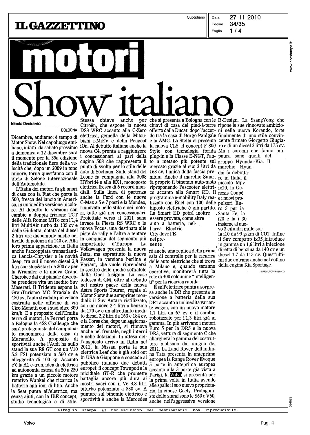 Author: DESIDERIO, NICOLALine: Corporate Model: Corporate Subject: - Title: MOTORI - SHOW ITALIANOHighlight: MOTORSHOW BOLOGNA - BRAND PRESENTI - VOLVO - GEELY - S60/V60 - R DESIGN